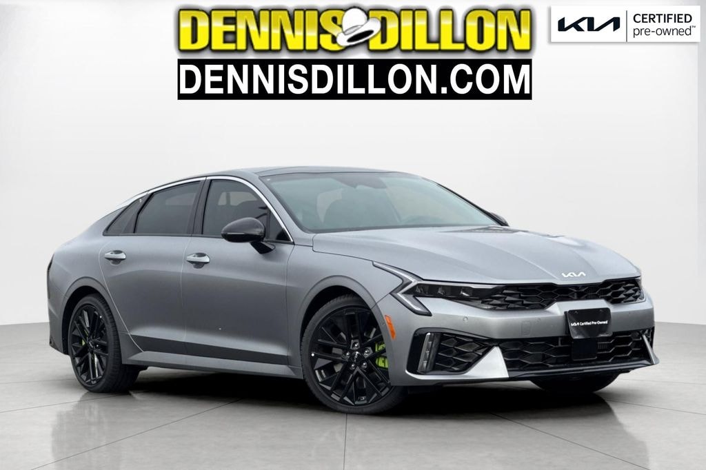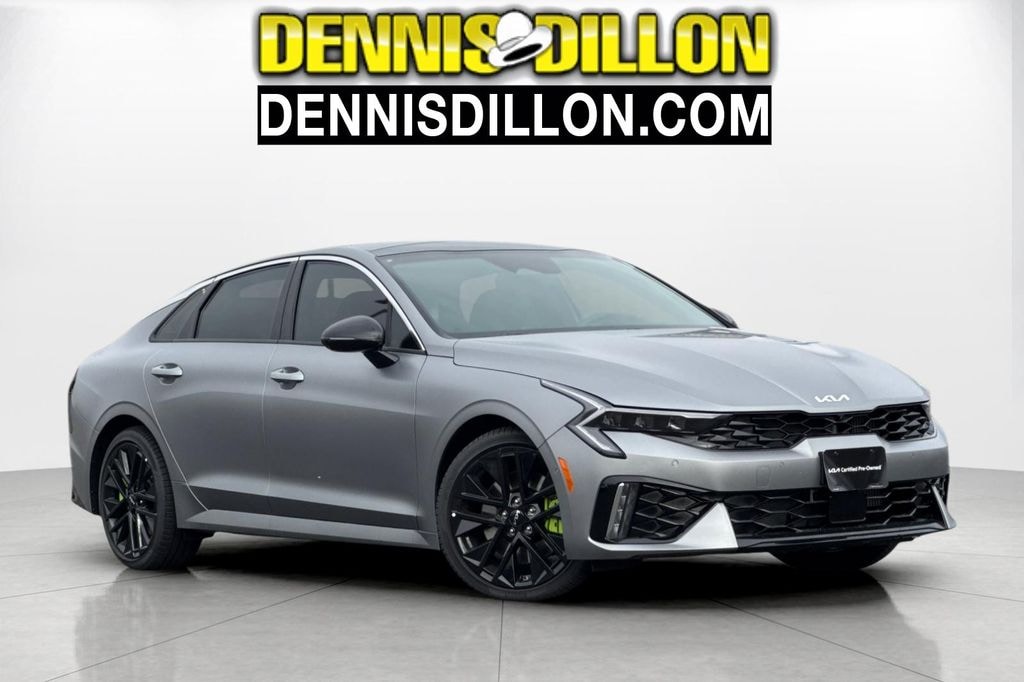 CARFAX One-Owner. Clean CARFAX. Certified. Steel Matte Gray 2026 Kia K5 GT FWD 8-Speed DCT I4 12.3" Instrument Display, 4-Wheel Disc Brakes, 6 Speakers, ABS brakes, Active Sound Design, Air Conditioning, Alloy wheels, AM/FM radio: SiriusXM, Auto High-beam Headlights, Automatic temperature control, Blind-Spot View Monitor, Bose Premium Audio, Brake assist, Bumpers: body-color, Carpeted Floor Mats, Delay-off headlights, Driver door bin, Driver vanity mirror, Dual front impact airbags, Dual front side impact airbags, Electronic Stability Control, Emergency communication system: Kia Connect (includes 1 year free trial), Four wheel independent suspension, Front anti-roll bar, Front Bucket Seats, Front Center Armrest, Front dual zone A/C, Front fog lights, Front reading lights, Fully automatic headlights, GT1 Package, Heated door mirrors, Heated front seats, Heated Sport Bucket Seats, Heated Steering Wheel, Illuminated entry, Knee airbag, Leather Shift Knob, Leather steering wheel, Low tire pressure warning, Navigation System, Occupant sensing airbag, Outside temperature display, Overhead airbag, Overhead console, Panic alarm, Parking Collision Avoidance-Assist - Reverse, Parking Distance Warning - Side, Passenger door bin, Passenger vanity mirror, Power door mirrors, Power driver seat, Power Folding Mirrors, Power Front Passenger Seat, Power moonroof, Power steering, Power windows, Radio data system, Radio: AM/FM Audio System, Rear anti-roll bar, Rear reading lights, Rear seat center armrest, Rear side impact airbag, Rear window defroster, Remote keyless entry, Security system, Smartphone Digital Key, Speed control, Speed-sensing steering, Split folding rear seat, Sport steering wheel, Steering wheel mounted audio controls, Surround View Monitor, SynTex Seat Trim, Tachometer, Telescoping steering wheel, Tilt steering wheel, Traction control, Trip computer, Turn signal indicator mirrors, Variably intermittent wipers, Ventilated Front Seats, Wheels: 19" x 8.0J Gloss Black Custom Alloy, Wheels: 19" x 8.0J Gloss Black Machined Finish Alloy.
