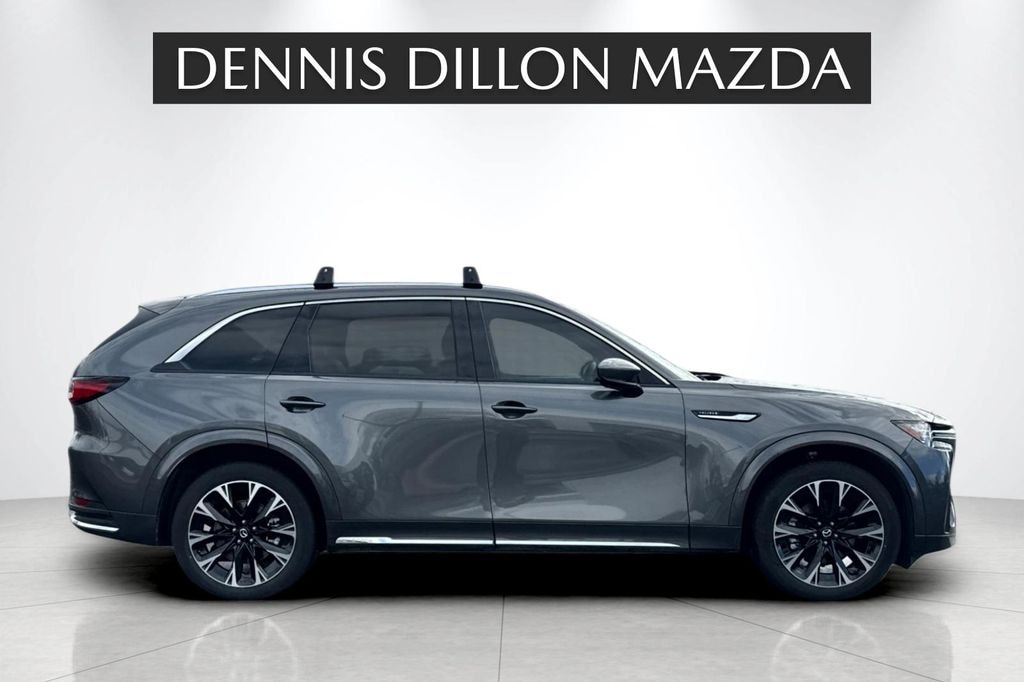 Clean CARFAX. Certified. Machine Gray Metallic 2025 Mazda CX-90 3.3 Turbo S Premium Plus AWD 8-Speed Automatic I6 Turbo **DENNIS DILLON KIA/MAZDA** 208-388-4444 CALL NOW!!!, ///MAZDA CERTIFIED///, 12 Speakers, 3rd row seats: bench, 4-Wheel Disc Brakes, ABS brakes, Air Conditioning, Alloy wheels, AM/FM radio: SiriusXM, Auto High-beam Headlights, Auto-dimming door mirrors, Auto-dimming Rear-View mirror, Automatic temperature control, Brake assist, Bumpers: body-color, Cargo Net, Compass, Crossbars in Silver, Delay-off headlights, Driver door bin, Driver vanity mirror, Dual front impact airbags, Dual front side impact airbags, E911 Automatic Emergency Notification, Electronic Stability Control, Emergency communication system: MAZDA CONNECT, Four wheel independent suspension, Front anti-roll bar, Front Bucket Seats, Front Center Armrest w/Storage, Front dual zone A/C, Front reading lights, Fully automatic headlights, Garage door transmitter: HomeLink, Heads-Up Display, Heated door mirrors, Heated front seats, Heated rear seats, Heated steering wheel, Heated/Ventilated Front Bucket Seats, Illuminated entry, Infotainment System Voice Command, Knee airbag, Leather Shift Knob, Leather steering wheel, Low tire pressure warning, Machine Gray Metallic Paint Charge, Mazda Connected Services, Mazda Navigation System, Memory seat, Nappa Leather Seat Trim w/Quilting, Navigation system: MAZDA CONNECT, Occupant sensing airbag, Outside temperature display, Overhead airbag, Overhead console, Pandora Internet Radio Integration, Panic alarm, Passenger door bin, Passenger vanity mirror, Power door mirrors, Power driver seat, Power Liftgate, Power moonroof, Power passenger seat, Power steering, Power windows, Radio Broadcast Data System Program Information, Radio data system, Radio: AM/FM w/HD/Bose 12-Speaker Sound System, Rain sensing wipers, Rear air conditioning, Rear anti-roll bar, Rear reading lights, Rear seat center armrest, Rear window defroster, Rear window wiper, Remote keyless entry, Security system, SMS Text Msg Audio Delivery & Reply, Speed control, Speed-sensing steering, Split folding rear seat, Spoiler, Steering wheel memory, Steering wheel mounted audio controls, Tachometer, Telescoping steering wheel, Tilt steering wheel, Traction control, Trip computer, Turn signal indicator mirrors, Variably intermittent wipers, Ventilated front seats, Ventilated rear seats, Wheels: 21" x 9.5J Aluminum Alloy.