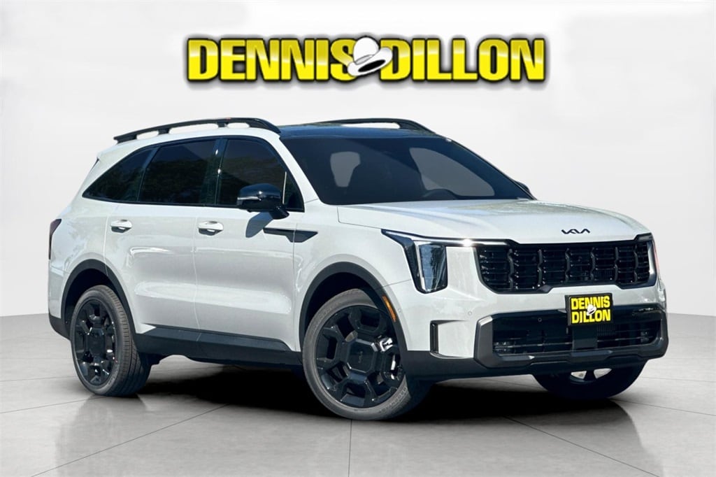 Wolf Gray 2025 Kia Sorento X-Line SX Prestige AWD 8 Speed Dual Clutch 2.5L I4 DGI Turbocharged DOHC 16V LEV3-SULEV30 281hp 12 Speakers, 3rd row seats: split-bench, 4-Wheel Disc Brakes, ABS brakes, Air Conditioning, Alloy wheels, AM/FM radio: SiriusXM, Apple CarPlay & Android Auto, Auto High-beam Headlights, Auto-dimming Rear-View mirror, Automatic temperature control, Brake assist, Bumpers: body-color, Carpet Cargo Mat w/Seatback Protection, Carpeted Floor Mats, Cross Bars X-Line, Delay-off headlights, Driver door bin, Driver vanity mirror, Dual front impact airbags, Dual front side impact airbags, Electronic Stability Control, Emergency communication system: 911 Connect, Exterior Parking Camera Rear, Four wheel independent suspension, Front anti-roll bar, Front Bucket Seats, Front Center Armrest, Front dual zone A/C, Front fog lights, Front reading lights, Fully automatic headlights, Garage door transmitter: HomeLink, Heated & Ventilated Front Bucket Seats, Heated door mirrors, Heated front seats, Heated rear seats, Heated steering wheel, Illuminated entry, Knee airbag, Leather Shift Knob, Leather steering wheel, Low tire pressure warning, Memory seat, Navigation System, Occupant sensing airbag, Outside temperature display, Overhead airbag, Overhead console, Panic alarm, Passenger door bin, Passenger vanity mirror, Perforated Genuine Leather Seat Trim, Power door mirrors, Power driver seat, Power Liftgate, Power moonroof, Power passenger seat, Power steering, Power windows, Radio data system, Radio: AM/FM Bose Premium Audio System, Rain sensing wipers, Rear anti-roll bar, Rear reading lights, Rear side impact airbag, Rear window defroster, Rear window wiper, Remote keyless entry, Security system, Speed control, Speed-sensing steering, Split folding rear seat, Spoiler, Steering wheel mounted audio controls, Tachometer, Telescoping steering wheel, Tilt steering wheel, Traction control, Trip computer, Turn signal indicator mirrors, Variably intermittent wipers, Ventilated front seats, Wheels: 20" Gloss Black X-Line Alloy.