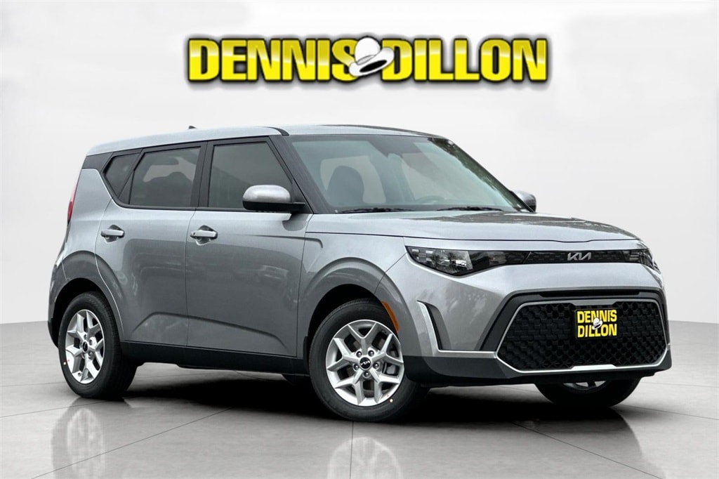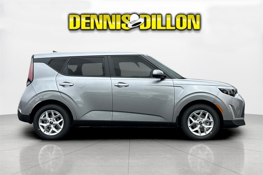 Steel Gray 2025 Kia Soul S FWD CVT 2.0L I4 DOHC 4-Wheel Disc Brakes, 6 Speakers, 6.5J x 16" Alloy Wheels, ABS brakes, Air Conditioning, Alloy wheels, AM/FM radio: SiriusXM, Apple CarPlay & Android Auto, Auto High-beam Headlights, Automatic temperature control, Brake assist, Bumpers: body-color, Carpeted Floor Mats, Compass, Delay-off headlights, Driver door bin, Driver vanity mirror, Dual front impact airbags, Dual front side impact airbags, Electronic Stability Control, Emergency communication system, Exterior Parking Camera Rear, Front anti-roll bar, Front Bucket Seats, Front Center Armrest, Front dual zone A/C, Front reading lights, Front wheel independent suspension, Fully automatic headlights, Illuminated entry, Low tire pressure warning, Mudguards, Navigation System, Occupant sensing airbag, Outside temperature display, Overhead airbag, Overhead console, Panic alarm, Passenger door bin, Passenger vanity mirror, Power door mirrors, Power driver seat, Power steering, Power windows, Radio data system, Radio: AM/FM/MP3/HD Audio System, Rear window defroster, Rear window wiper, Remote keyless entry, Speed control, Speed-sensing steering, Split folding rear seat, Steering wheel mounted audio controls, Tachometer, Telescoping steering wheel, Tilt steering wheel, Traction control, Trip computer, Variably intermittent wipers, Woven & Tricot Cloth Seat Trim.