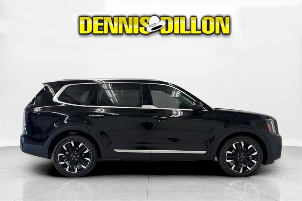 Ebony Black 2025 Kia Telluride SX AWD 8-Speed Automatic 3.8L V6 DOHC 10 Speakers, 3rd row seats: split-bench, 4-Wheel Disc Brakes, ABS brakes, Air Conditioning, Alloy wheels, AM/FM radio: SiriusXM, Apple CarPlay & Android Auto, Auto High-beam Headlights, Auto-dimming Rear-View mirror, Auto-leveling suspension, Automatic temperature control, Brake assist, Bumpers: body-color, Carpet Cargo Mat w/Seatback Protection, Carpeted Floor Mats, Compass, Delay-off headlights, Driver door bin, Driver vanity mirror, Dual front impact airbags, Dual front side impact airbags, Electronic Stability Control, Emergency communication system: 911 Connect, Exterior Parking Camera Rear, Four wheel independent suspension, Front anti-roll bar, Front Bucket Seats, Front Center Armrest, Front dual zone A/C, Front fog lights, Front reading lights, Fully automatic headlights, Garage door transmitter: HomeLink, harman/kardon® Speakers, Heated & Ventilated Front Bucket Seats, Heated door mirrors, Heated front seats, Illuminated entry, Knee airbag, Leather Seat Trim, Leather Shift Knob, Leather steering wheel, Low tire pressure warning, Memory seat, Navigation System, Occupant sensing airbag, Outside temperature display, Overhead airbag, Overhead console, Panic alarm, Passenger door bin, Passenger vanity mirror, Power door mirrors, Power driver seat, Power Liftgate, Power moonroof, Power passenger seat, Power steering, Power windows, Radio data system, Radio: AM/FM Harman Kardon Audio System, Rear air conditioning, Rear anti-roll bar, Rear audio controls, Rear reading lights, Rear seat center armrest, Rear side impact airbag, Rear window defroster, Rear window wiper, Reclining 3rd row seat, Remote keyless entry, Security system, Speed control, Speed-sensing steering, Split folding rear seat, Spoiler, Steering wheel mounted audio controls, Tachometer, Telescoping steering wheel, Tilt steering wheel, Traction control, Trip computer, Turn signal indicator mirrors, Variably intermittent wipers, Ventilated front seats, Wheels: 20" x 7.5" Black Finish.