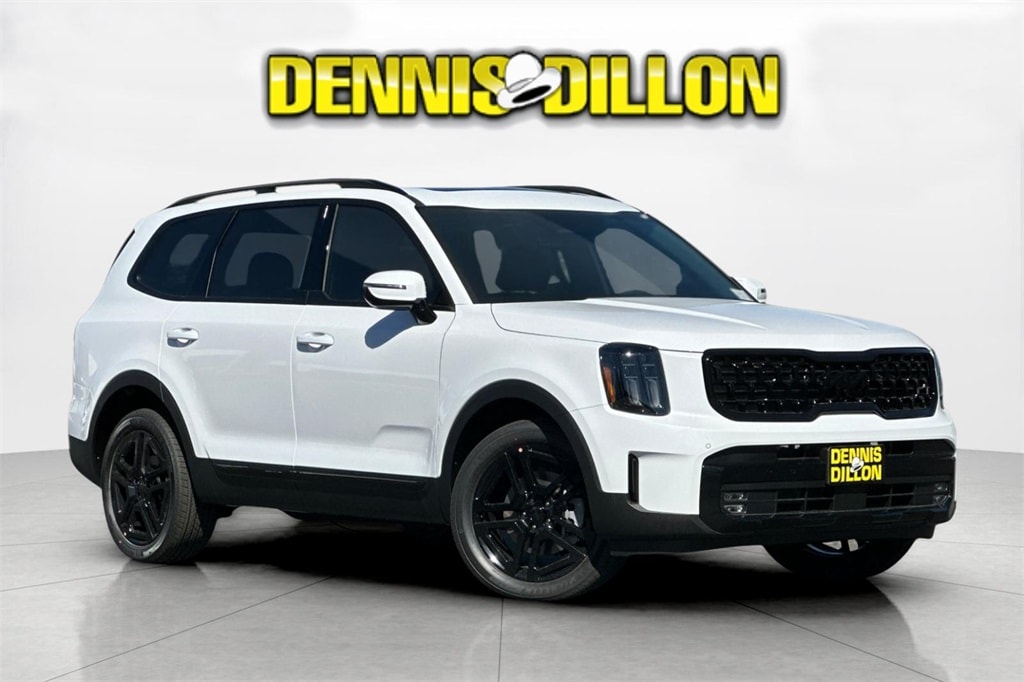 Glacial White Pearl 2025 Kia Telluride SX X-Line AWD 8-Speed Automatic 3.8L V6 DOHC 10 Speakers, 3rd row seats: split-bench, 4-Wheel Disc Brakes, ABS brakes, Air Conditioning, Alloy wheels, AM/FM radio: SiriusXM, Apple CarPlay & Android Auto, Auto High-beam Headlights, Auto-dimming Rear-View mirror, Auto-leveling suspension, Automatic temperature control, Brake assist, Bumpers: body-color, Carpet Cargo Mat w/Seatback Protection, Carpeted Floor Mats, Compass, Delay-off headlights, Driver door bin, Driver vanity mirror, Dual front impact airbags, Dual front side impact airbags, Electronic Stability Control, Emergency communication system: 911 Connect, Exterior Parking Camera Rear, Four wheel independent suspension, Front anti-roll bar, Front Bucket Seats, Front Center Armrest, Front dual zone A/C, Front fog lights, Front reading lights, Fully automatic headlights, Garage door transmitter: HomeLink, harman/kardon® Speakers, Heated & Ventilated Front Bucket Seats, Heated door mirrors, Heated front seats, Heated steering wheel, Illuminated entry, Knee airbag, Leather Seat Trim, Leather Shift Knob, Leather steering wheel, Low tire pressure warning, Memory seat, Navigation System, Occupant sensing airbag, Outside temperature display, Overhead airbag, Overhead console, Panic alarm, Passenger door bin, Passenger vanity mirror, Power door mirrors, Power driver seat, Power Liftgate, Power moonroof, Power passenger seat, Power steering, Power windows, Radio data system, Radio: AM/FM Harman Kardon Audio System, Rear air conditioning, Rear anti-roll bar, Rear audio controls, Rear reading lights, Rear side impact airbag, Rear window defroster, Rear window wiper, Reclining 3rd row seat, Remote keyless entry, Security system, Speed control, Speed-sensing steering, Split folding rear seat, Spoiler, Steering wheel mounted audio controls, Tachometer, Telescoping steering wheel, Tilt steering wheel, Traction control, Trip computer, Turn signal indicator mirrors, Variably intermittent wipers, Ventilated front seats, Wheels: 20" x 7.5" Black Finish X-LINE Exclusive.