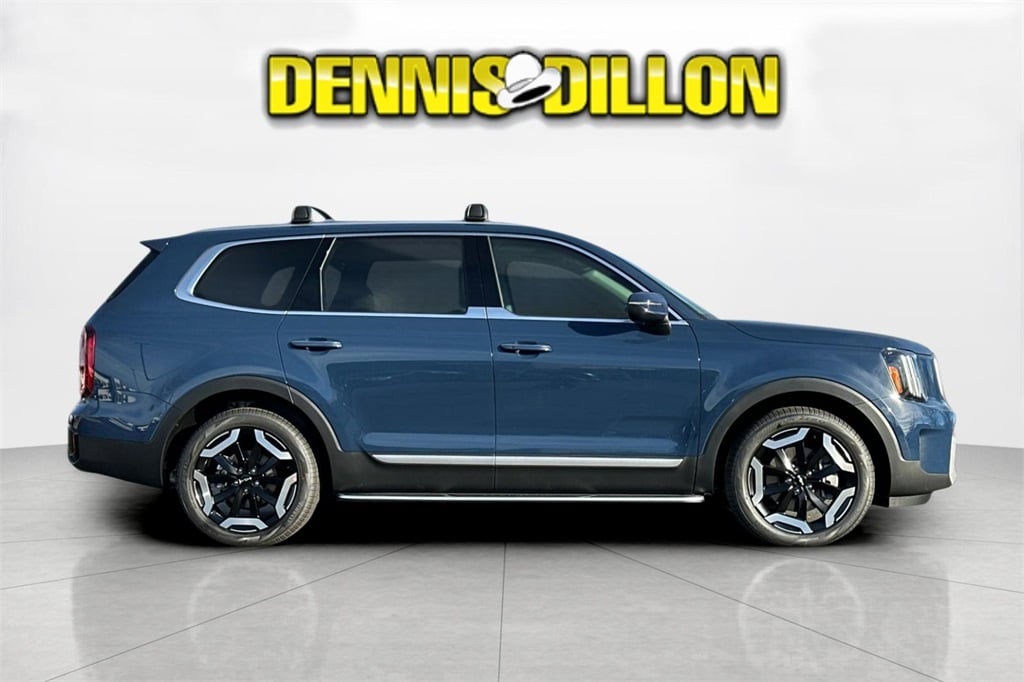Midnight Lake Blue 2025 Kia Telluride S AWD 8-Speed Automatic 3.8L V6 DOHC 3rd row seats: split-bench, 4-Wheel Disc Brakes, 6 Speakers, ABS brakes, Air Conditioning, Alloy wheels, AM/FM radio: SiriusXM, Apple CarPlay & Android Auto, Auto High-beam Headlights, Automatic temperature control, Brake assist, Bumpers: body-color, Carpeted Floor Mats, Cross Bars, Delay-off headlights, Driver door bin, Driver vanity mirror, Dual front impact airbags, Dual front side impact airbags, Electronic Stability Control, Emergency communication system: 911 Connect, Exterior Parking Camera Rear, Folding Cargo Tray, Four wheel independent suspension, Front anti-roll bar, Front Bucket Seats, Front Center Armrest, Front dual zone A/C, Front reading lights, Fully automatic headlights, Heated door mirrors, Heated Front Bucket Seats, Heated front seats, Illuminated entry, Knee airbag, Leather Shift Knob, Leather steering wheel, Low tire pressure warning, Navigation System, Occupant sensing airbag, Outside temperature display, Overhead airbag, Overhead console, Panic alarm, Passenger door bin, Passenger vanity mirror, Power door mirrors, Power driver seat, Power Liftgate, Power moonroof, Power steering, Power windows, Radio data system, Radio: AM/FM Display Audio System, Rear air conditioning, Rear anti-roll bar, Rear audio controls, Rear reading lights, Rear side impact airbag, Rear window defroster, Rear window wiper, Reclining 3rd row seat, Remote keyless entry, Security system, Side Step Bars, Speed control, Speed-sensing steering, Split folding rear seat, Spoiler, Steering wheel mounted audio controls, SynTex Synthetic Leather Seat Trim, Tachometer, Telescoping steering wheel, Tilt steering wheel, Traction control, Trip computer, Turn signal indicator mirrors, Variably intermittent wipers, Wheels: 20" x 7.5" Black Finish.