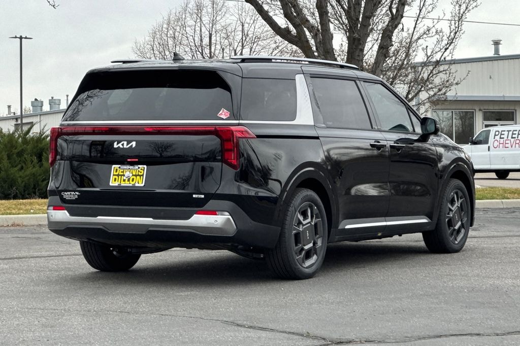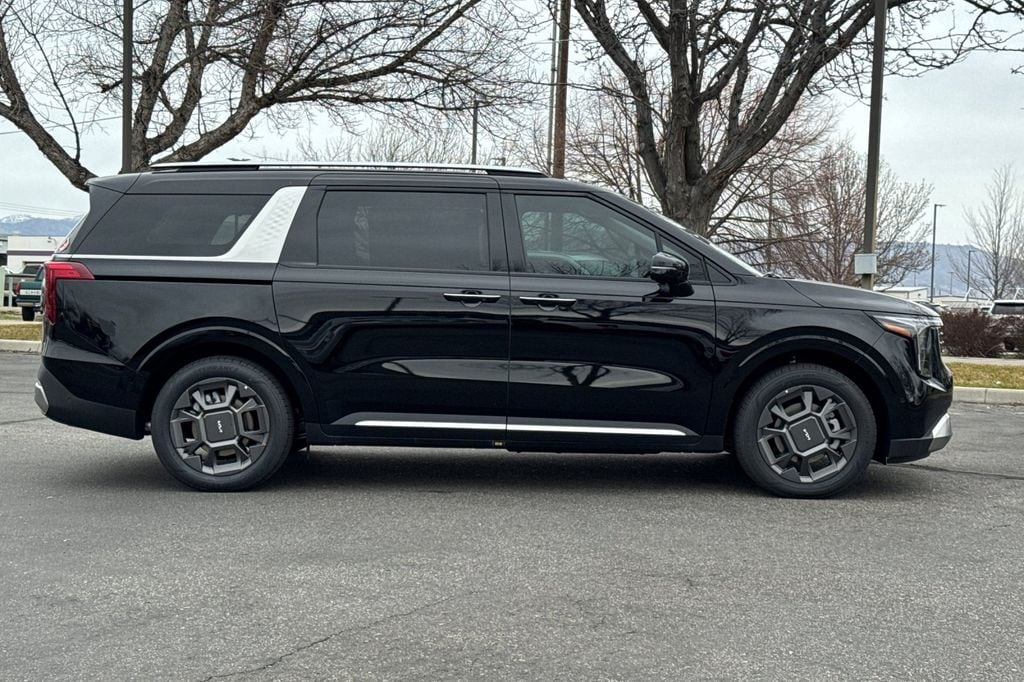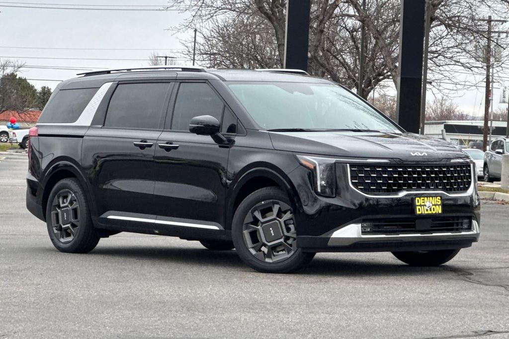 Aurora Black Pearl 2026 Kia Carnival Hybrid SX FWD 6-Speed Automatic 1.6L I4 DGI Hybrid Turbocharged DOHC 16V LEV3-SULEV30 3rd row seats: split-bench, 4-Wheel Disc Brakes, 8 Speakers, ABS brakes, Air Conditioning, Alloy wheels, AM/FM radio: SiriusXM, Apple CarPlay & Android Auto, Artificial Leather Seat Trim, Auto High-beam Headlights, Automatic temperature control, Brake assist, Bumpers: body-color, Cargo Mat, Carpeted Floor Mats (8-Passenger), Compass, Delay-off headlights, Driver door bin, Driver vanity mirror, Dual front impact airbags, Dual front side impact airbags, Electronic Stability Control, Emergency communication system, Exterior Parking Camera Rear, Four wheel independent suspension, Front anti-roll bar, Front Bucket Seats, Front Center Armrest, Front dual zone A/C, Front fog lights, Front reading lights, Fully automatic headlights, Heated and Ventilated Front Bucket Seats, Heated door mirrors, Heated front seats, Illuminated entry, Knee airbag, Leather Shift Knob, Leather steering wheel, Low tire pressure warning, Memory seat, Navigation System, Occupant sensing airbag, Outside temperature display, Overhead airbag, Overhead console, Panic alarm, Passenger door bin, Passenger vanity mirror, Power 2nd-Row Moonroof, Power door mirrors, Power driver seat, Power Liftgate, Power moonroof, Power passenger seat, Power steering, Power windows, Radio: : Navigation System with SiriusXM, Rain sensing wipers, Rear air conditioning, Rear anti-roll bar, Rear reading lights, Rear window defroster, Rear window wiper, Reclining 3rd row seat, Remote keyless entry, Security system, Speed control, Speed-sensing steering, Split folding rear seat, Spoiler, Steering wheel mounted audio controls, Tachometer, Telescoping steering wheel, Tilt steering wheel, Traction control, Trip computer, Turn signal indicator mirrors, Variably intermittent wipers, Ventilated front seats, Wheels: 19" Black Alloy, Wheels: 19" Black D-Cut Customizing.
