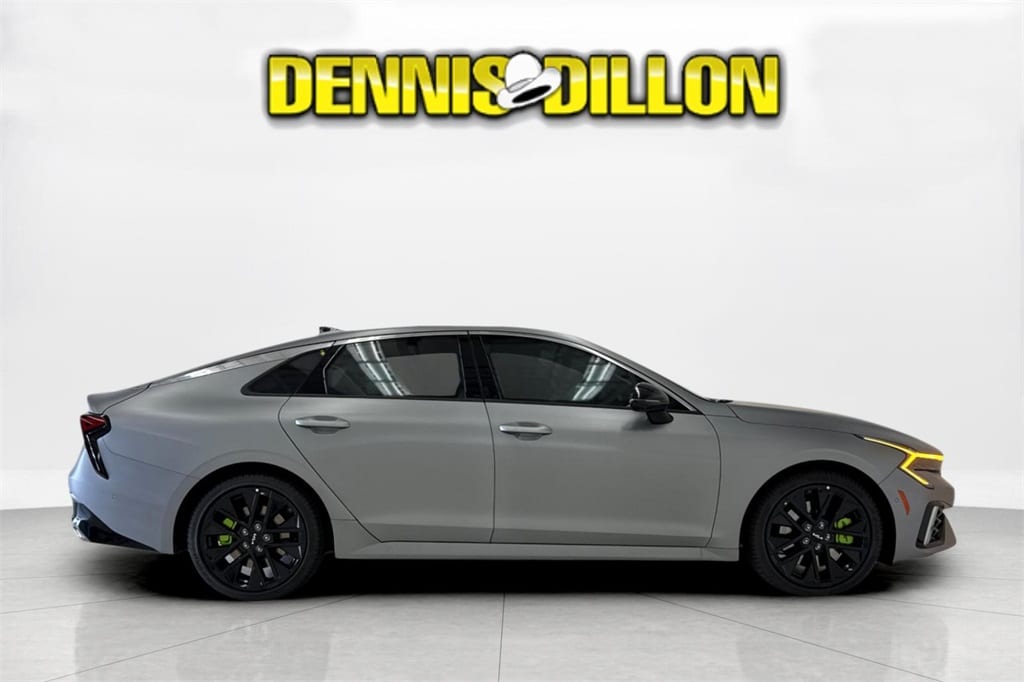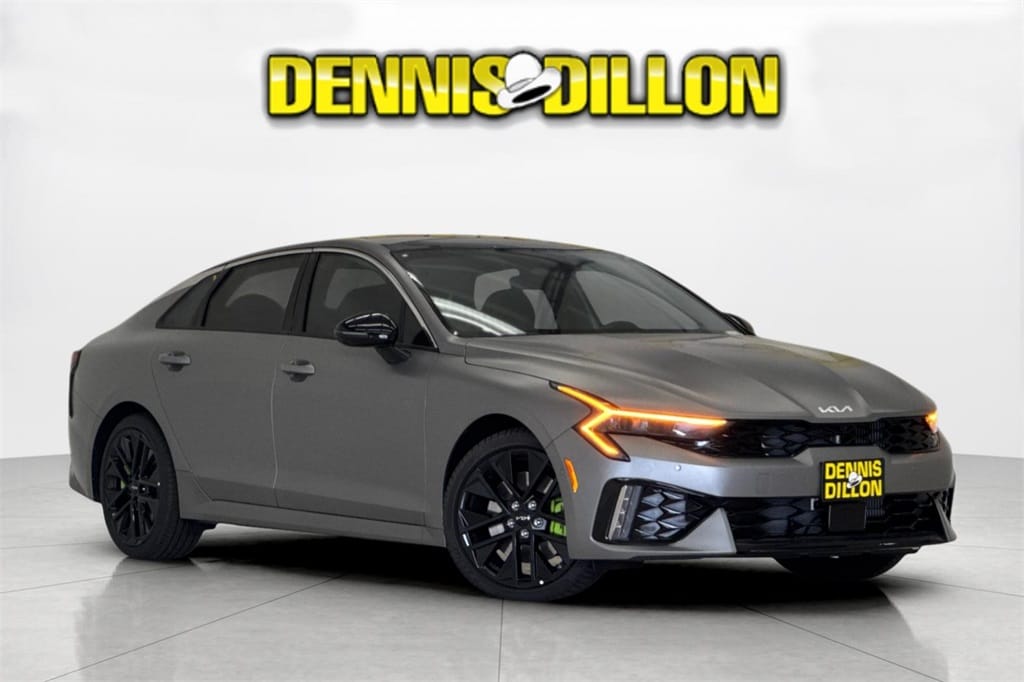 Steel Matte Gray 2026 Kia K5 GT FWD 8-Speed DCT I4 12.3" Instrument Display, 2-Position Memory Driver's Seat & Outside Mirrors, 4-Wheel Disc Brakes, 6 Speakers, ABS brakes, Active Sound Design, Air Conditioning, Alloy wheels, AM/FM radio: SiriusXM, Auto High-beam Headlights, Auto Up/Down Front Passenger & Rear Windows, Automatic temperature control, Blind-Spot View Monitor, Bose Premium Audio, Brake assist, Bumpers: body-color, Cargo Net, Carpeted Floor Mats, Delay-off headlights, Driver door bin, Driver vanity mirror, Dual front impact airbags, Dual front side impact airbags, Electronic Stability Control, Emergency communication system: Kia Connect (includes 1 year free trial), Four wheel independent suspension, Front anti-roll bar, Front Bucket Seats, Front Center Armrest, Front dual zone A/C, Front fog lights, Front reading lights, Fully automatic headlights, GT1 Package, Heated door mirrors, Heated front seats, Heated Sport Bucket Seats, Heated Steering Wheel, Illuminated entry, Knee airbag, Leather Shift Knob, Leather steering wheel, Low tire pressure warning, Navigation System, Occupant sensing airbag, Outside temperature display, Overhead airbag, Overhead console, Panic alarm, Parking Collision Avoidance-Assist - Reverse, Parking Distance Warning - Side, Passenger door bin, Passenger vanity mirror, Power door mirrors, Power driver seat, Power Folding Mirrors, Power Front Passenger Seat, Power moonroof, Power steering, Power windows, Radio data system, Radio: AM/FM Audio System, Rear anti-roll bar, Rear reading lights, Rear seat center armrest, Rear side impact airbag, Rear window defroster, Remote keyless entry, Security system, Smartphone Digital Key, Speed control, Speed-sensing steering, Split folding rear seat, Sport steering wheel, Steering wheel mounted audio controls, Surround View Monitor, SynTex Seat Trim, Tachometer, Telescoping steering wheel, Tilt steering wheel, Traction control, Trip computer, Turn signal indicator mirrors, Variably intermittent wipers, Ventilated Front Seats, Wheel Locks, Wheels: 19" x 8.0J Gloss Black Custom Alloy, Wheels: 19" x 8.0J Gloss Black Machined Finish Alloy.
