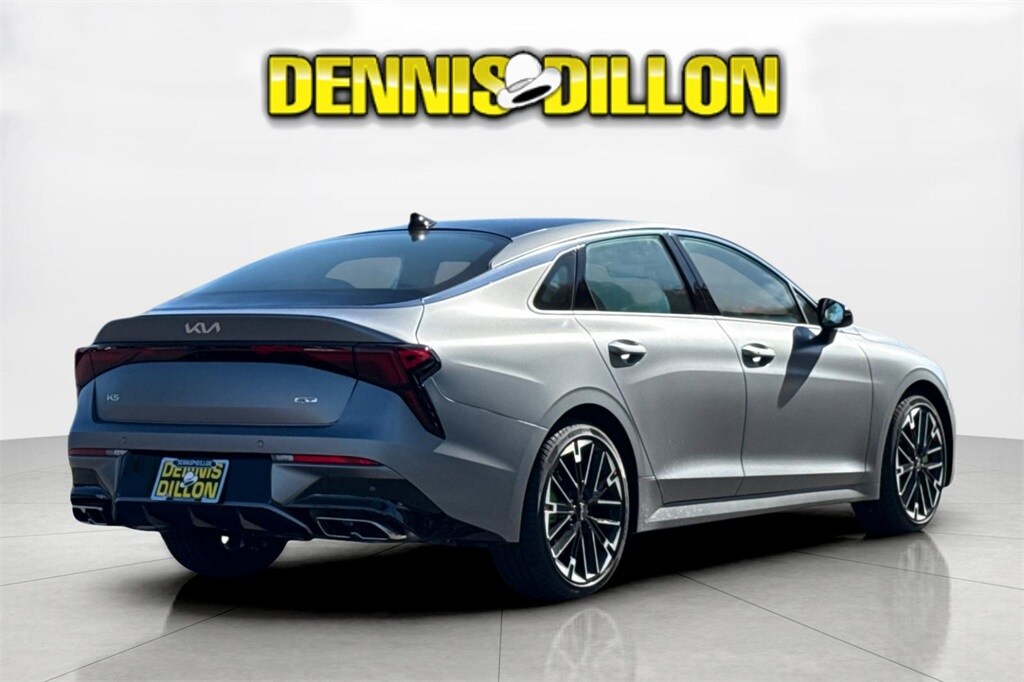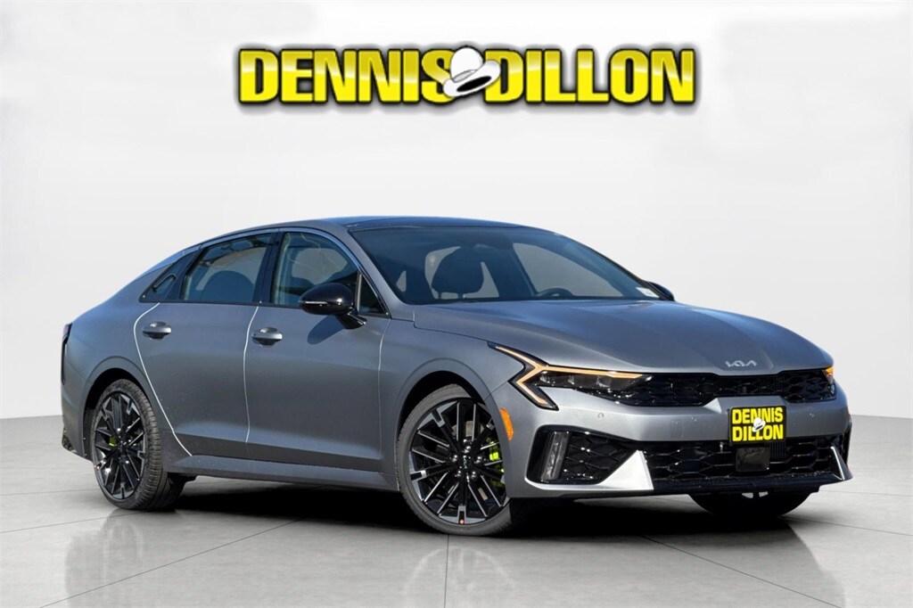 Steel Matte Gray 2026 Kia K5 GT FWD 8-Speed DCT I4 4-Wheel Disc Brakes, 6 Speakers, ABS brakes, Air Conditioning, Alloy wheels, AM/FM radio: SiriusXM, Auto High-beam Headlights, Automatic temperature control, Brake assist, Bumpers: body-color, Cargo Mat, Cargo Net, Carpeted Floor Mats, Delay-off headlights, Driver door bin, Driver vanity mirror, Dual front impact airbags, Dual front side impact airbags, Electronic Stability Control, Emergency communication system: Kia Connect (includes 1 year free trial), Four wheel independent suspension, Front anti-roll bar, Front Bucket Seats, Front Center Armrest, Front dual zone A/C, Front fog lights, Front reading lights, Fully automatic headlights, Heated door mirrors, Heated front seats, Heated Sport Bucket Seats, Illuminated entry, Knee airbag, Leather Shift Knob, Leather steering wheel, Low tire pressure warning, Navigation System, Occupant sensing airbag, Outside temperature display, Overhead airbag, Overhead console, Panic alarm, Passenger door bin, Passenger vanity mirror, Power door mirrors, Power driver seat, Power moonroof, Power steering, Power windows, Radio data system, Radio: AM/FM Audio System, Rear anti-roll bar, Rear reading lights, Rear seat center armrest, Rear side impact airbag, Rear window defroster, Remote keyless entry, Security system, Speed control, Speed-sensing steering, Split folding rear seat, Sport steering wheel, Steering wheel mounted audio controls, SynTex Seat Trim, Tachometer, Telescoping steering wheel, Tilt steering wheel, Traction control, Trip computer, Turn signal indicator mirrors, Variably intermittent wipers, Wheels: 19" x 8.0J Gloss Black Machined Finish Alloy.