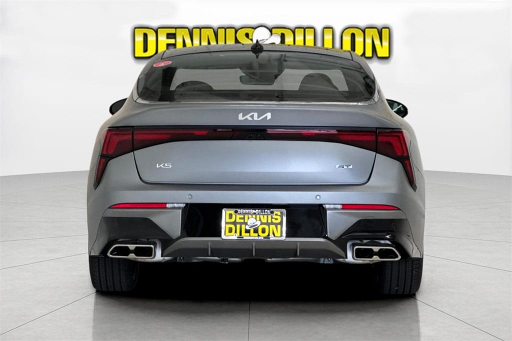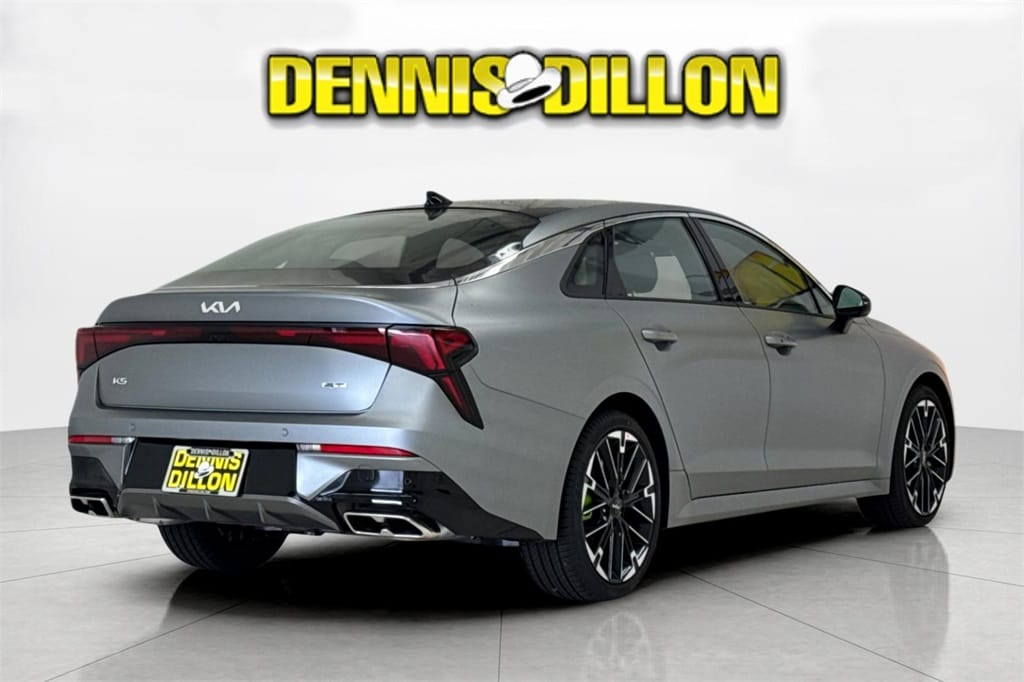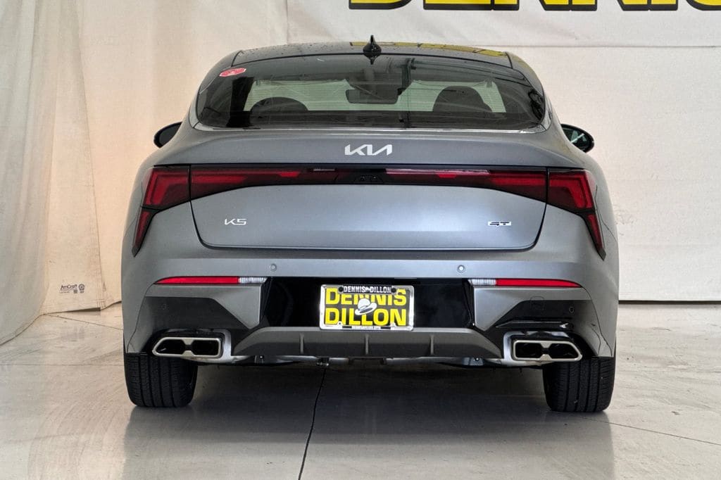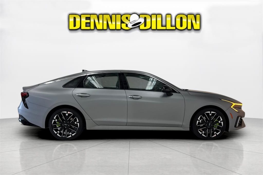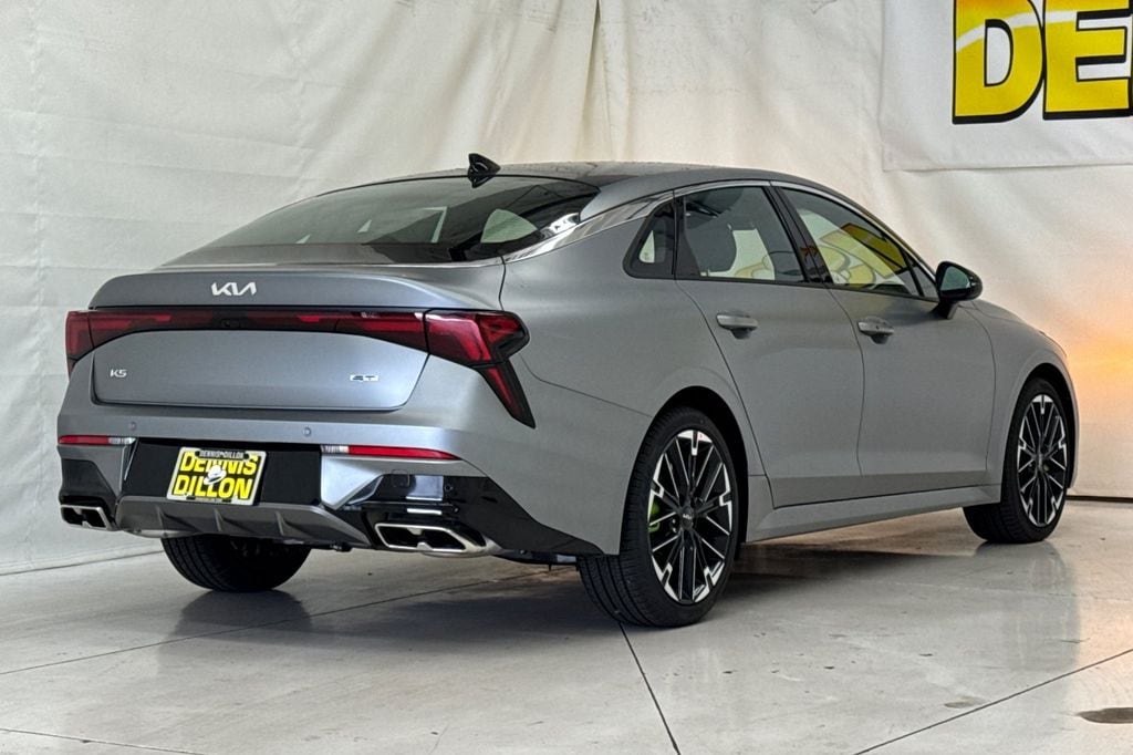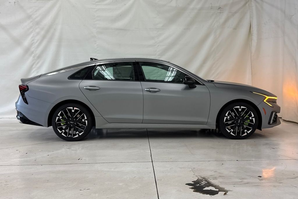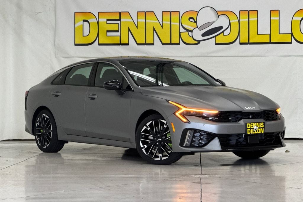 Steel Matte Gray 2026 Kia K5 GT FWD 8-Speed DCT I4 4-Wheel Disc Brakes, 6 Speakers, ABS brakes, Air Conditioning, Alloy wheels, AM/FM radio: SiriusXM, Auto High-beam Headlights, Automatic temperature control, Brake assist, Bumpers: body-color, Cargo Net, Carpeted Floor Mats, Delay-off headlights, Driver door bin, Driver vanity mirror, Dual front impact airbags, Dual front side impact airbags, Electronic Stability Control, Emergency communication system: Kia Connect (includes 1 year free trial), Four wheel independent suspension, Front anti-roll bar, Front Bucket Seats, Front Center Armrest, Front dual zone A/C, Front fog lights, Front reading lights, Fully automatic headlights, Heated door mirrors, Heated front seats, Heated Sport Bucket Seats, Illuminated entry, Knee airbag, Leather Shift Knob, Leather steering wheel, Low tire pressure warning, Navigation System, Occupant sensing airbag, Outside temperature display, Overhead airbag, Overhead console, Panic alarm, Passenger door bin, Passenger vanity mirror, Power door mirrors, Power driver seat, Power moonroof, Power steering, Power windows, Radio data system, Radio: AM/FM Audio System, Rear anti-roll bar, Rear reading lights, Rear seat center armrest, Rear side impact airbag, Rear window defroster, Remote keyless entry, Security system, Speed control, Speed-sensing steering, Split folding rear seat, Sport steering wheel, Steering wheel mounted audio controls, SynTex Seat Trim, Tachometer, Telescoping steering wheel, Tilt steering wheel, Traction control, Trip computer, Turn signal indicator mirrors, Variably intermittent wipers, Wheels: 19" x 8.0J Gloss Black Machined Finish Alloy.