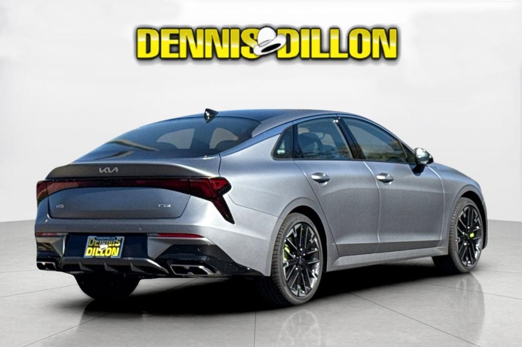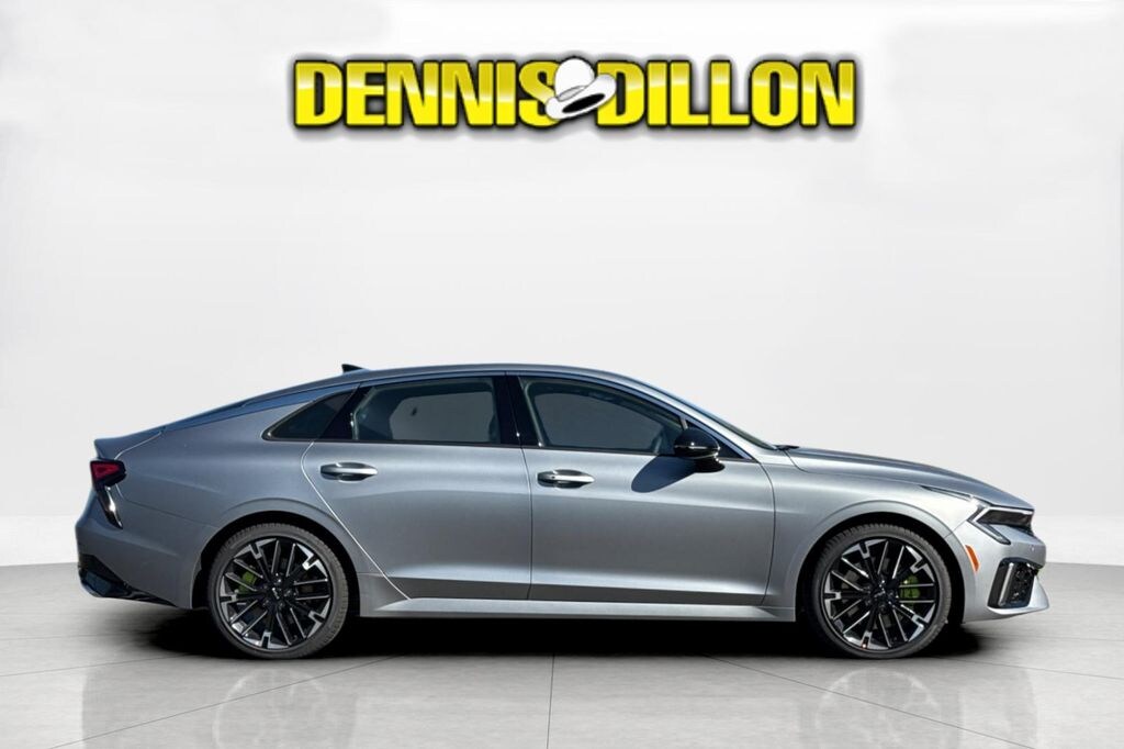 Steel Matte Gray 2026 Kia K5 GT FWD 8-Speed DCT I4 4-Wheel Disc Brakes, 6 Speakers, ABS brakes, Air Conditioning, Alloy wheels, AM/FM radio: SiriusXM, Auto High-beam Headlights, Automatic temperature control, Brake assist, Bumpers: body-color, Carpeted Floor Mats, Delay-off headlights, Driver door bin, Driver vanity mirror, Dual front impact airbags, Dual front side impact airbags, Electronic Stability Control, Emergency communication system: Kia Connect (includes 1 year free trial), Four wheel independent suspension, Front anti-roll bar, Front Bucket Seats, Front Center Armrest, Front dual zone A/C, Front fog lights, Front reading lights, Fully automatic headlights, Heated door mirrors, Heated front seats, Heated Sport Bucket Seats, Illuminated entry, Knee airbag, Leather Shift Knob, Leather steering wheel, Low tire pressure warning, Navigation System, Occupant sensing airbag, Outside temperature display, Overhead airbag, Overhead console, Panic alarm, Passenger door bin, Passenger vanity mirror, Power door mirrors, Power driver seat, Power moonroof, Power steering, Power windows, Radio data system, Radio: AM/FM Audio System, Rear anti-roll bar, Rear reading lights, Rear seat center armrest, Rear side impact airbag, Rear window defroster, Remote keyless entry, Security system, Speed control, Speed-sensing steering, Split folding rear seat, Sport steering wheel, Steering wheel mounted audio controls, SynTex Seat Trim, Tachometer, Telescoping steering wheel, Tilt steering wheel, Traction control, Trip computer, Turn signal indicator mirrors, Variably intermittent wipers, Wheels: 19" x 8.0J Gloss Black Machined Finish Alloy.
