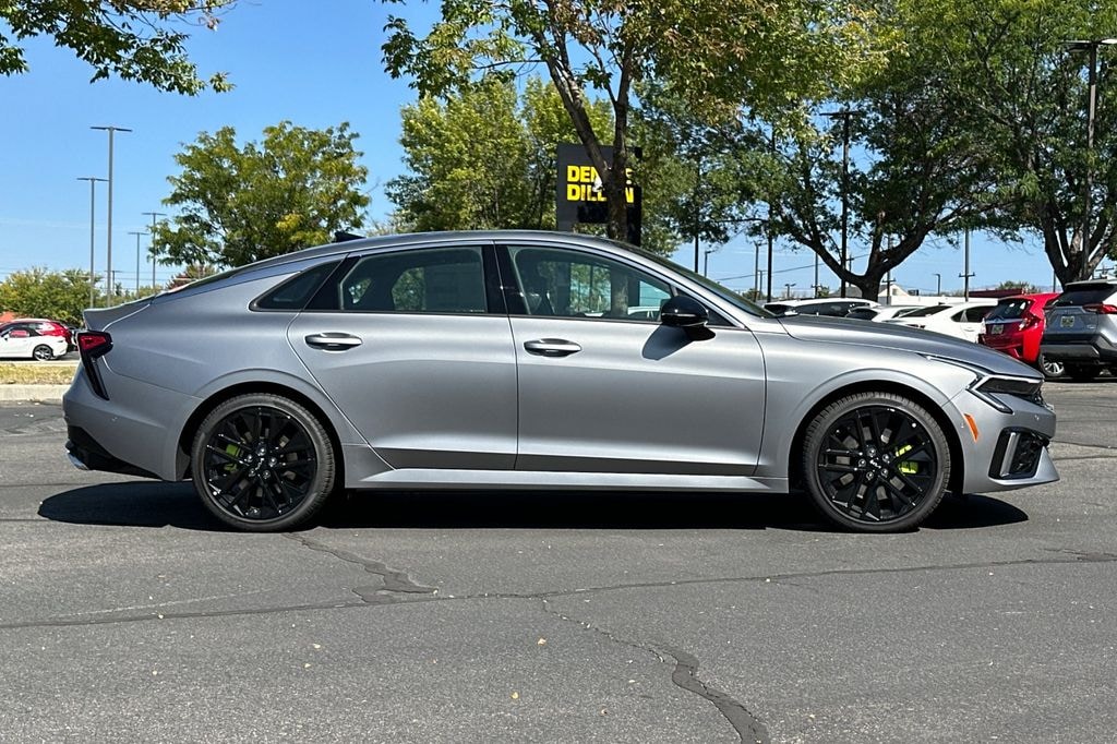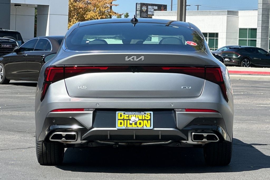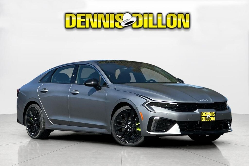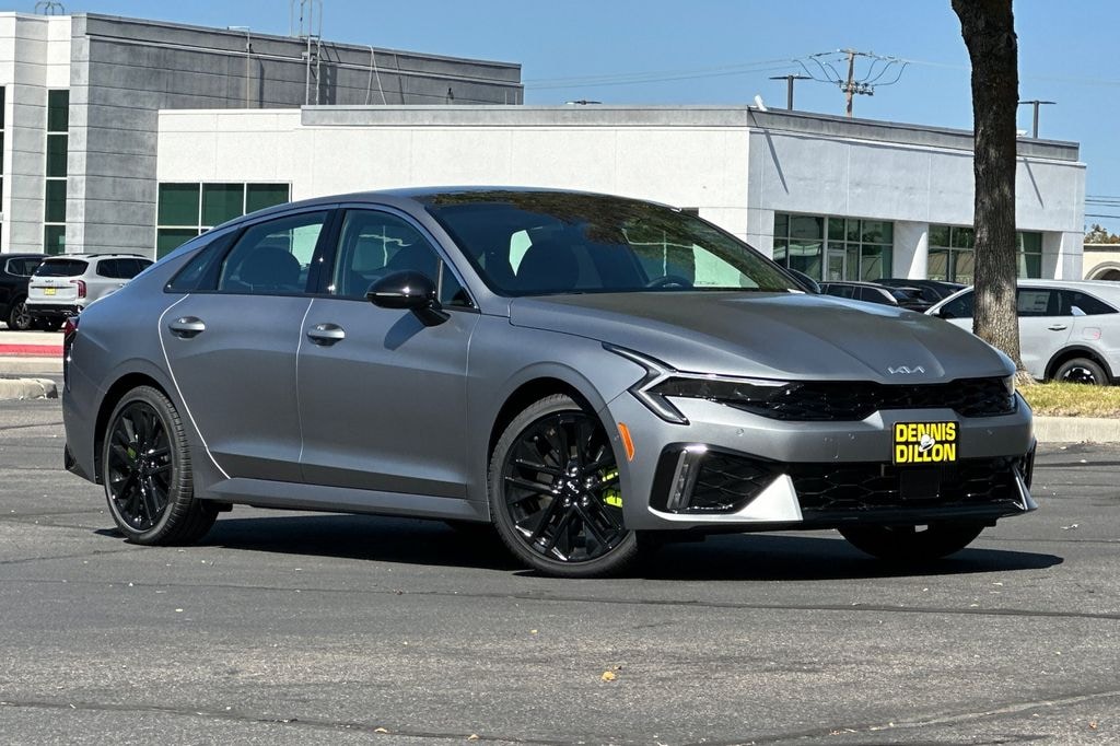 Steel Matte Gray 2026 Kia K5 GT FWD 8-Speed DCT I4 12.3" Instrument Display, 4-Wheel Disc Brakes, 6 Speakers, ABS brakes, Active Sound Design, Air Conditioning, Alloy wheels, AM/FM radio: SiriusXM, Auto High-beam Headlights, Auto Up/Down Front Passenger and Rear Windows, Automatic temperature control, Blind-Spot View Monitor, Bose Premium Audio, Brake assist, Bumpers: body-color, Carpeted Floor Mats, Delay-off headlights, Driver door bin, Driver vanity mirror, Dual front impact airbags, Dual front side impact airbags, Electronic Stability Control, Emergency communication system: Kia Connect (includes 1 year free trial), Four wheel independent suspension, Front anti-roll bar, Front Bucket Seats, Front Center Armrest, Front dual zone A/C, Front fog lights, Front reading lights, Fully automatic headlights, GT1 Package, Heated door mirrors, Heated front seats, Heated Sport Bucket Seats, Heated Steering Wheel, Illuminated entry, Knee airbag, Leather Shift Knob, Leather steering wheel, Low tire pressure warning, Memory Driver's Seat and Outside Mirrors, Navigation System, Occupant sensing airbag, Outside temperature display, Overhead airbag, Overhead console, Panic alarm, Parking Collision Avoidance-Assist - Reverse, Parking Distance Warning - Side, Passenger door bin, Passenger vanity mirror, Power door mirrors, Power driver seat, Power Folding Mirrors, Power Front Passenger Seat, Power moonroof, Power steering, Power windows, Radio data system, Radio: AM/FM Audio System, Rear anti-roll bar, Rear reading lights, Rear seat center armrest, Rear side impact airbag, Rear window defroster, Remote keyless entry, Security system, Smartphone Digital Key, Speed control, Speed-sensing steering, Split folding rear seat, Sport steering wheel, Steering wheel mounted audio controls, Surround View Monitor, SynTex Seat Trim, Tachometer, Telescoping steering wheel, Tilt steering wheel, Traction control, Trip computer, Turn signal indicator mirrors, Variably intermittent wipers, Ventilated Front Seats, Wheels: 19" x 8.0J Gloss Black Custom Alloy, Wheels: 19" x 8.0J Gloss Black Machined Finish Alloy.