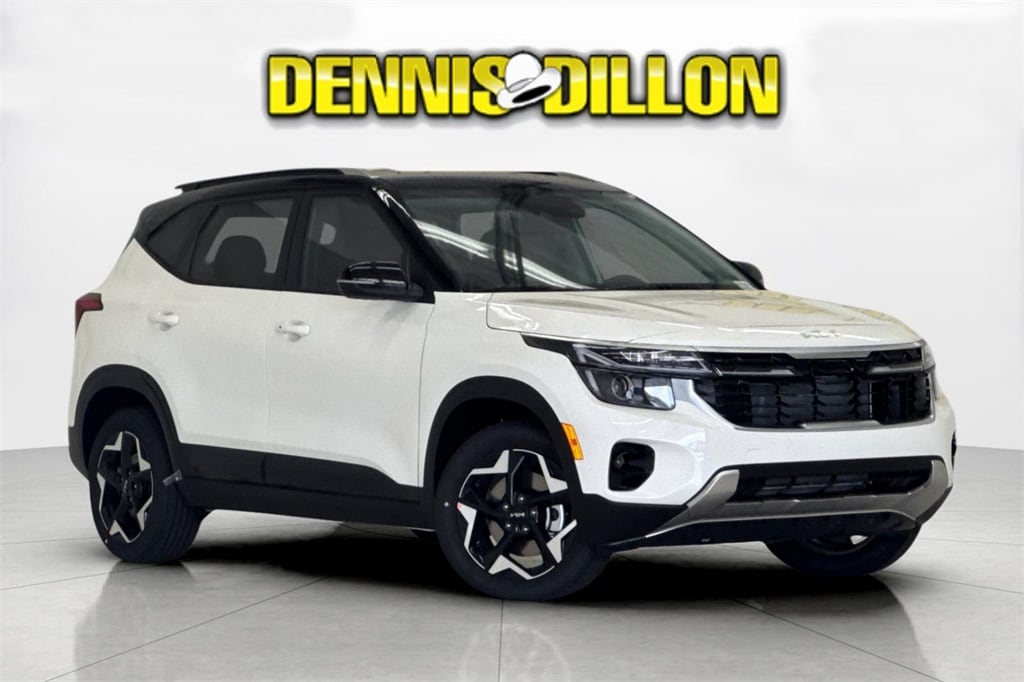Clear White/Black Roof 2026 Kia Seltos S AWD CVT 2.0L I4 MPI 4-Wheel Disc Brakes, 6 Speakers, ABS brakes, Air Conditioning, Alloy wheels, AM/FM radio: SiriusXM, Apple CarPlay & Android Auto, Auto High-beam Headlights, Automatic temperature control, Brake assist, Bumpers: body-color, Cargo Net (Floor), Carpet Floor Mats, Cloth & Artificial Leather Seat Trim, Delay-off headlights, Driver door bin, Driver vanity mirror, Dual front impact airbags, Dual front side impact airbags, Electronic Stability Control, Emergency communication system: 911 Connect, Exterior Parking Camera Rear, Four wheel independent suspension, Front anti-roll bar, Front Bucket Seats, Front Center Armrest, Front fog lights, Front reading lights, Fully automatic headlights, Glossy Black Door Garnish, Glossy Black Door Garnish Package, Heated door mirrors, Heated Front Bucket Seats (3-Steps), Heated front seats, Illuminated entry, Leather Shift Knob, Leather steering wheel, Low tire pressure warning, Navigation System, Occupant sensing airbag, Outside temperature display, Overhead airbag, Overhead console, Panic alarm, Passenger door bin, Passenger vanity mirror, Power door mirrors, Power steering, Power windows, Radio: AM/FM/HD/Satellite Display System w/Navigation, Rear seat center armrest, Rear window defroster, Rear window wiper, Remote keyless entry, Security system, Speed control, Speed-sensing steering, Split folding rear seat, Spoiler, Steering wheel mounted audio controls, Tachometer, Telescoping steering wheel, Tilt steering wheel, Traction control, Trip computer, Turn signal indicator mirrors, Variably intermittent wipers, Wheels: 17" Alloy w/Machined Finish.
