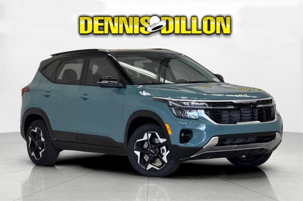 Pluton Blue/Black Roof 2026 Kia Seltos S AWD CVT 2.0L I4 MPI 4-Wheel Disc Brakes, 6 Speakers, ABS brakes, Air Conditioning, Alloy wheels, AM/FM radio: SiriusXM, Apple CarPlay & Android Auto, Auto High-beam Headlights, Automatic temperature control, Brake assist, Bumpers: body-color, Carpet Floor Mats, Cloth & Artificial Leather Seat Trim, Delay-off headlights, Driver door bin, Driver vanity mirror, Dual front impact airbags, Dual front side impact airbags, Electronic Stability Control, Emergency communication system: 911 Connect, Exterior Parking Camera Rear, Four wheel independent suspension, Front anti-roll bar, Front Bucket Seats, Front Center Armrest, Front fog lights, Front reading lights, Fully automatic headlights, Glossy Black Door Garnish, Glossy Black Door Garnish Package, Heated door mirrors, Heated Front Bucket Seats (3-Steps), Heated front seats, Illuminated entry, Leather Shift Knob, Leather steering wheel, Low tire pressure warning, Navigation System, Occupant sensing airbag, Outside temperature display, Overhead airbag, Overhead console, Panic alarm, Passenger door bin, Passenger vanity mirror, Power door mirrors, Power steering, Power windows, Radio: AM/FM/HD/Satellite Display System w/Navigation, Rear seat center armrest, Rear window defroster, Rear window wiper, Remote keyless entry, Security system, Speed control, Speed-sensing steering, Split folding rear seat, Spoiler, Steering wheel mounted audio controls, Tachometer, Telescoping steering wheel, Tilt steering wheel, Traction control, Trip computer, Turn signal indicator mirrors, Variably intermittent wipers, Wheels: 17" Alloy w/Machined Finish.