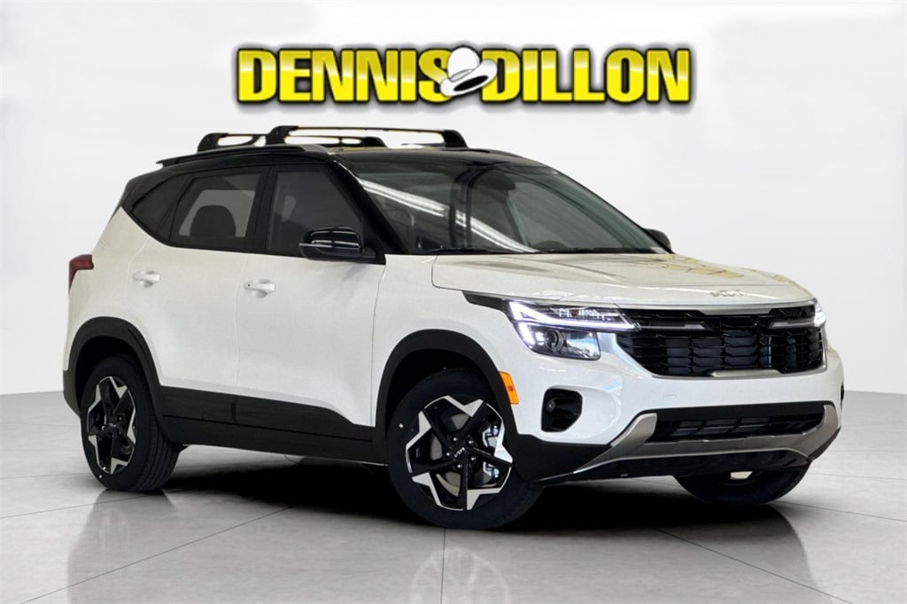 Clear White/Black Roof 2026 Kia Seltos S AWD CVT 2.0L I4 MPI 4-Wheel Disc Brakes, 6 Speakers, ABS brakes, Air Conditioning, Alloy wheels, AM/FM radio: SiriusXM, Apple CarPlay & Android Auto, Auto High-beam Headlights, Automatic temperature control, Brake assist, Bumpers: body-color, Cargo Cover, Carpet Floor Mats, Cloth & Artificial Leather Seat Trim, Cross Bars, Delay-off headlights, Driver door bin, Driver vanity mirror, Dual front impact airbags, Dual front side impact airbags, Electronic Stability Control, Emergency communication system: 911 Connect, Exterior Parking Camera Rear, Four wheel independent suspension, Front anti-roll bar, Front Bucket Seats, Front Center Armrest, Front fog lights, Front reading lights, Fully automatic headlights, Glossy Black Door Garnish, Glossy Black Door Garnish Package, Heated door mirrors, Heated Front Bucket Seats (3-Steps), Heated front seats, Illuminated entry, Leather Shift Knob, Leather steering wheel, Low tire pressure warning, Navigation System, Occupant sensing airbag, Outside temperature display, Overhead airbag, Overhead console, Panic alarm, Passenger door bin, Passenger vanity mirror, Power door mirrors, Power steering, Power windows, Radio: AM/FM/HD/Satellite Display System w/Navigation, Rear seat center armrest, Rear window defroster, Rear window wiper, Remote keyless entry, Security system, Speed control, Speed-sensing steering, Split folding rear seat, Spoiler, Steering wheel mounted audio controls, Tachometer, Telescoping steering wheel, Tilt steering wheel, Traction control, Trip computer, Turn signal indicator mirrors, Variably intermittent wipers, Wheels: 17" Alloy w/Machined Finish.