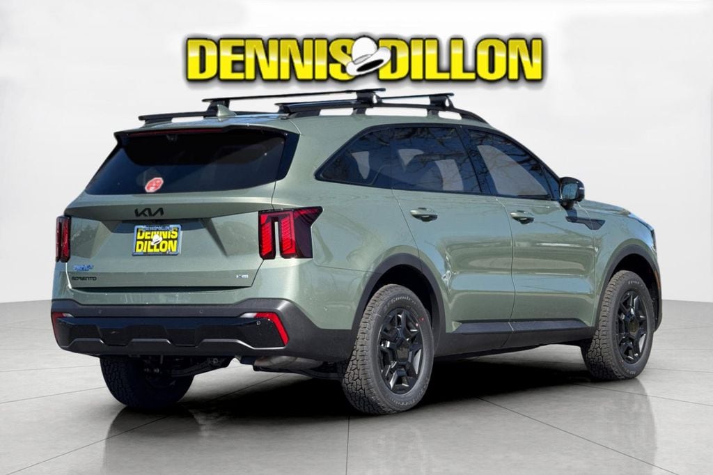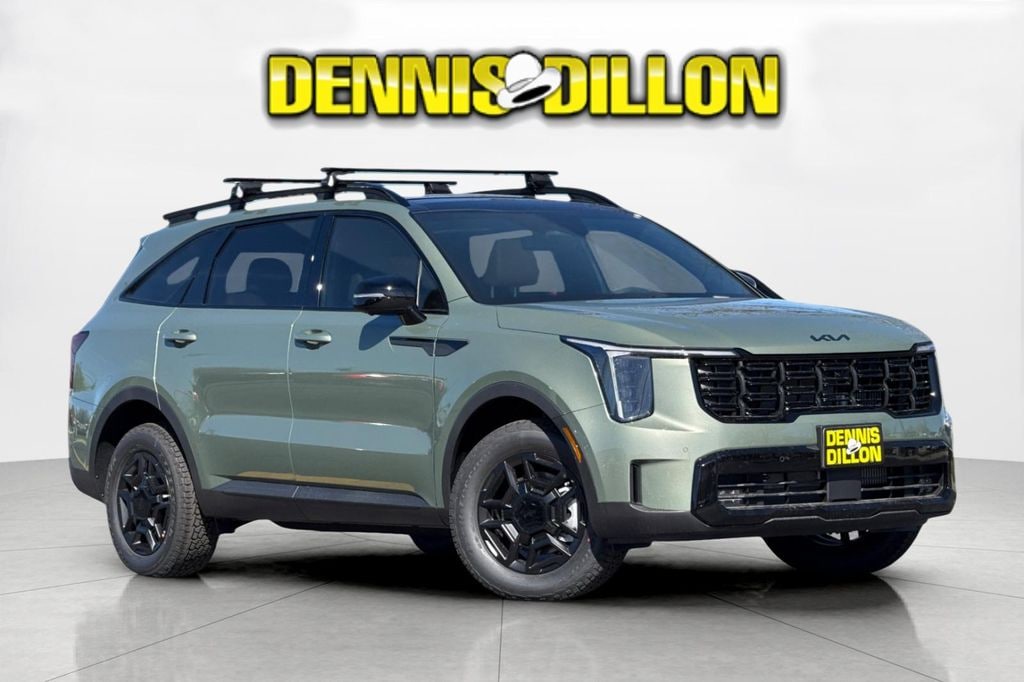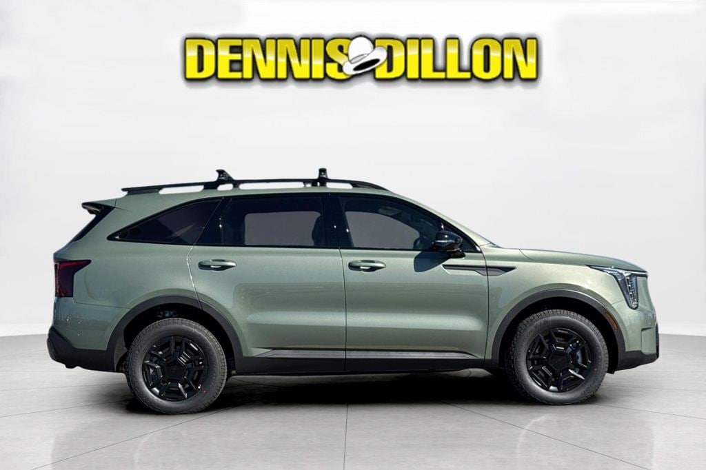Jungle Green 2026 Kia Sorento X-Pro SX Prestige AWD 8 Speed Dual Clutch 2.5L I4 DGI Turbocharged DOHC 16V LEV3-SULEV30 281hp 12 Speakers, 3rd row seats: split-bench, 4-Wheel Disc Brakes, ABS brakes, Air Conditioning, Alloy wheels, AM/FM radio: SiriusXM, Apple CarPlay & Android Auto, Auto High-beam Headlights, Auto-dimming Rear-View mirror, Automatic temperature control, Brake assist, Bumpers: body-color, Carpet Cargo Mat with Seatback Protection, Carpeted Floor Mats, Cross Bars X-Line, Delay-off headlights, Driver door bin, Driver vanity mirror, Dual front impact airbags, Dual front side impact airbags, Electronic Stability Control, Emergency communication system: 911 Connect, Exterior Parking Camera Rear, Four wheel independent suspension, Front anti-roll bar, Front Bucket Seats, Front Center Armrest, Front dual zone A/C, Front fog lights, Front reading lights, Fully automatic headlights, Garage door transmitter: HomeLink, Heated and Ventilated Front Bucket Seats, Heated door mirrors, Heated front seats, Heated rear seats, Heated steering wheel, Illuminated entry, Knee airbag, Leather Shift Knob, Leather steering wheel, Low tire pressure warning, Memory seat, Navigation System, Occupant sensing airbag, Olive Brown Leather Package, Outside temperature display, Overhead airbag, Overhead console, Panic alarm, Passenger door bin, Passenger vanity mirror, Perforated Genuine Leather Seat Trim, Power door mirrors, Power driver seat, Power Liftgate, Power moonroof, Power passenger seat, Power steering, Power windows, Radio data system, Radio: AM/FM Bose Premium Audio System, Rain sensing wipers, Rear anti-roll bar, Rear reading lights, Rear side impact airbag, Rear window defroster, Rear window wiper, Remote keyless entry, Security system, Speed control, Speed-sensing steering, Split folding rear seat, Spoiler, Steering wheel mounted audio controls, Tachometer, Telescoping steering wheel, Tilt steering wheel, Traction control, Trip computer, Turn signal indicator mirrors, Variably intermittent wipers, Ventilated front seats, Wheels: 17" x 7.0J Gloss Black Alloy.