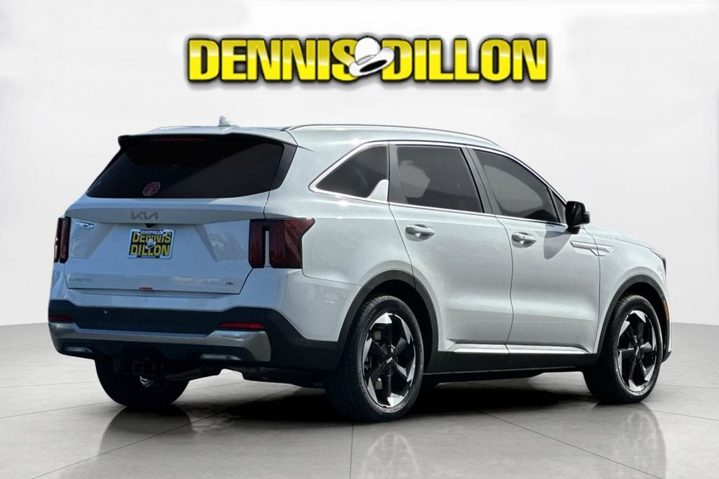 Snow White Pearl 2026 Kia Sorento Hybrid EX AWD 6-Speed Automatic 1.6L Turbo GDI 4-Cylinder 2nd Row Captain's Chairs, 3rd row seats: split-bench, 4-Wheel Disc Brakes, 6 Speakers, ABS brakes, Air Conditioning, Alloy wheels, AM/FM radio: SiriusXM, Apple CarPlay & Android Auto, Auto High-beam Headlights, Auto-dimming Rear-View mirror, Automatic temperature control, Brake assist, Bumpers: body-color, Carpeted Cargo Mat with Seatback Protection, Carpeted Floor Mats, Delay-off headlights, Driver door bin, Driver vanity mirror, Dual front impact airbags, Dual front side impact airbags, Electronic Stability Control, Emergency communication system: 911 Connect, EX Premium Package, Exterior Parking Camera Rear, Four wheel independent suspension, Front anti-roll bar, Front Bucket Seats, Front Center Armrest, Front dual zone A/C, Front fog lights, Front reading lights, Full-Length One-Touch Panoroof with Sliding Sunshade, Fully automatic headlights, Heated door mirrors, Heated Front Bucket Seats, Heated front seats, Illuminated entry, Knee airbag, Leather steering wheel, LED Interior Lighting, Low tire pressure warning, Navigation System, Occupant sensing airbag, Outside temperature display, Overhead airbag, Overhead console, Panic alarm, Passenger door bin, Passenger vanity mirror, Power door mirrors, Power driver seat, Power Liftgate, Power passenger seat, Power steering, Power windows, Radio data system, Radio: AM/FM Bose Premium Audio System, Radio: AM/FM/SiriusXM Audio System, Rear anti-roll bar, Rear reading lights, Rear seat center armrest, Rear side impact airbag, Rear window defroster, Rear window wiper, Remote keyless entry, Security system, Speed control, Speed-sensing steering, Split folding rear seat, Spoiler, Steering wheel mounted audio controls, SynTex Artificial Leather Seat Trim, Tachometer, Telescoping steering wheel, Tilt steering wheel, Tow Hitch (PnP), Traction control, Trip computer, Turn signal indicator mirrors, Variably intermittent wipers, Wheels: 19" Machine-Finished Aero Alloy.