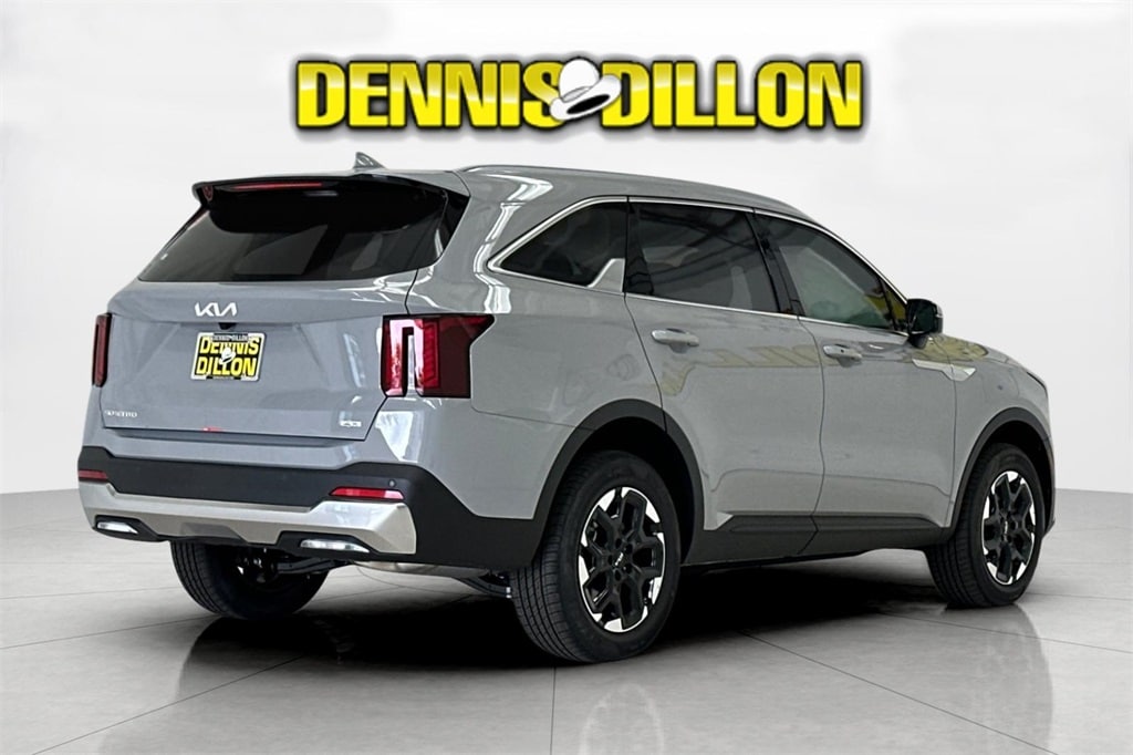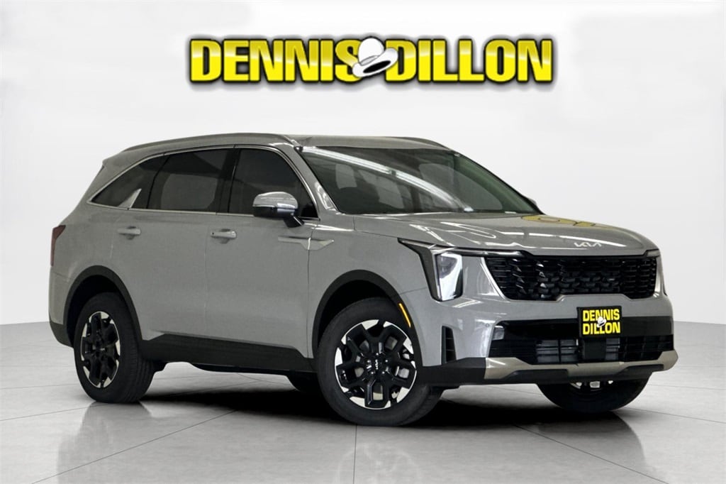 Wolf Gray 2026 Kia Sorento S AWD 8-Speed Automatic 2.5L I4 DGI DOHC 16V LEV3-SULEV30 191hp 3rd row seats: split-bench, 4-Wheel Disc Brakes, 6 Speakers, ABS brakes, Air Conditioning, Alloy wheels, AM/FM radio: SiriusXM, Apple CarPlay & Android Auto, Auto High-beam Headlights, Automatic temperature control, Brake assist, Bumpers: body-color, Carpeted Floor Mats, Delay-off headlights, Driver door bin, Driver vanity mirror, Dual front impact airbags, Dual front side impact airbags, Electronic Stability Control, Emergency communication system: 911 Connect, Exterior Parking Camera Rear, Four wheel independent suspension, Front anti-roll bar, Front Bucket Seats, Front Center Armrest, Front dual zone A/C, Front reading lights, Fully automatic headlights, Heated door mirrors, Heated Front Bucket Seats, Heated front seats, Illuminated entry, Knee airbag, Leather Shift Knob, Leather steering wheel, Low tire pressure warning, Occupant sensing airbag, Outside temperature display, Overhead airbag, Overhead console, Panic alarm, Passenger door bin, Passenger vanity mirror, Power door mirrors, Power driver seat, Power steering, Power windows, Radio data system, Radio: AM/FM Standard Sound System, Rear anti-roll bar, Rear reading lights, Rear seat center armrest, Rear side impact airbag, Rear window defroster, Rear window wiper, Remote keyless entry, Security system, Speed control, Speed-sensing steering, Split folding rear seat, Spoiler, Steering wheel mounted audio controls, SynTex Artificial Leather Seat Trim, Tachometer, Telescoping steering wheel, Tilt steering wheel, Traction control, Trip computer, Turn signal indicator mirrors, Variably intermittent wipers, Wheels: 18" Gloss Black Alloy.