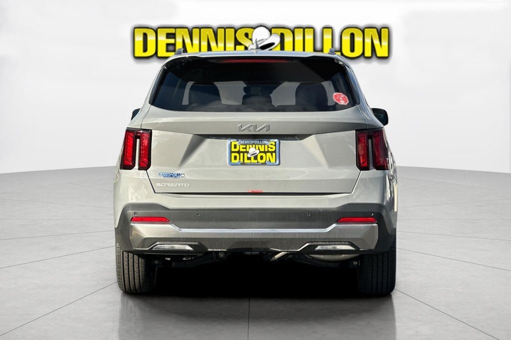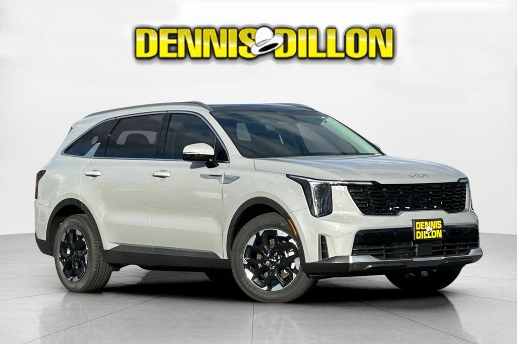 Wolf Gray 2026 Kia Sorento S FWD 8-Speed Automatic 2.5L I4 DGI DOHC 16V LEV3-SULEV30 191hp 3rd row seats: split-bench, 4-Wheel Disc Brakes, 6 Speakers, ABS brakes, Air Conditioning, Alloy wheels, AM/FM radio: SiriusXM, Apple CarPlay & Android Auto, Auto High-beam Headlights, Automatic temperature control, Brake assist, Bumpers: body-color, Cargo Net, Carpeted Floor Mats, Delay-off headlights, Driver door bin, Driver vanity mirror, Dual front impact airbags, Dual front side impact airbags, Electronic Stability Control, Emergency communication system: 911 Connect, Exterior Parking Camera Rear, Four wheel independent suspension, Front anti-roll bar, Front Bucket Seats, Front Center Armrest, Front dual zone A/C, Front reading lights, Full-Length One-Touch Panoroof with Sliding Sunshade, Fully automatic headlights, Heated door mirrors, Heated Front Bucket Seats, Heated front seats, Illuminated entry, Knee airbag, Leather Shift Knob, Leather steering wheel, LED Interior Lighting, Low tire pressure warning, Occupant sensing airbag, Outside temperature display, Overhead airbag, Overhead console, Panic alarm, Passenger door bin, Passenger vanity mirror, Power door mirrors, Power driver seat, Power steering, Power windows, Radio data system, Radio: AM/FM Standard Sound System, Rear anti-roll bar, Rear reading lights, Rear seat center armrest, Rear side impact airbag, Rear window defroster, Rear window wiper, Remote keyless entry, S Panoramic Sunroof Package, Security system, Speed control, Speed-sensing steering, Split folding rear seat, Spoiler, Steering wheel mounted audio controls, SynTex Artificial Leather Seat Trim, Tachometer, Telescoping steering wheel, Tilt steering wheel, Traction control, Trip computer, Turn signal indicator mirrors, Variably intermittent wipers, Wheels: 18" Gloss Black Alloy.