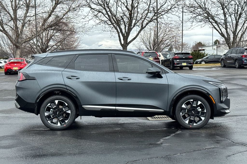 Shadow Matte Gray 2026 Kia Sportage Hybrid SX-Prestige AWD 6-Speed Automatic 1.6L Turbo GDI 4-Cylinder 4-Wheel Disc Brakes, 8 Speakers, ABS brakes, Air Conditioning, All Weather Floor Mats, Alloy wheels, AM/FM radio: SiriusXM, Auto High-beam Headlights, Automatic temperature control, Brake assist, Bumpers: body-color, Cargo Tray, Carmine Red Interior Color Package, Compass, Delay-off headlights, Driver door bin, Driver vanity mirror, Dual front impact airbags, Dual front side impact airbags, Electronic Stability Control, Emergency communication system, Four wheel independent suspension, Front anti-roll bar, Front Bucket Seats, Front Center Armrest, Front dual zone A/C, Front fog lights, Front reading lights, Fully automatic headlights, harman/kardon® Speakers, Heated and Ventilated Front Bucket Seats, Heated door mirrors, Heated front seats, Heated steering wheel, Illuminated entry, Leather steering wheel, Low tire pressure warning, Memory seat, Mud Guards, Navigation System, Occupant sensing airbag, Outside temperature display, Overhead airbag, Overhead console, Panic alarm, Passenger door bin, Passenger vanity mirror, Power door mirrors, Power driver seat, Power Liftgate, Power moonroof, Power passenger seat, Power steering, Power windows, Radio: AM/FM/HD Premium Audio System, Rain sensing wipers, Rear anti-roll bar, Rear reading lights, Rear seat center armrest, Rear side impact airbag, Rear window defroster, Rear window wiper, Remote keyless entry, Security system, Small First Aid Kit, Speed control, Speed-sensing steering, Split folding rear seat, Spoiler, Steering wheel mounted audio controls, Syntex Premium Leatherette Seat Trim, Tachometer, Telescoping steering wheel, Tilt steering wheel, Traction control, Trip computer, Turn signal indicator mirrors, Variably intermittent wipers, Ventilated front seats, Wheels: 19" x 7.5J Alloy.