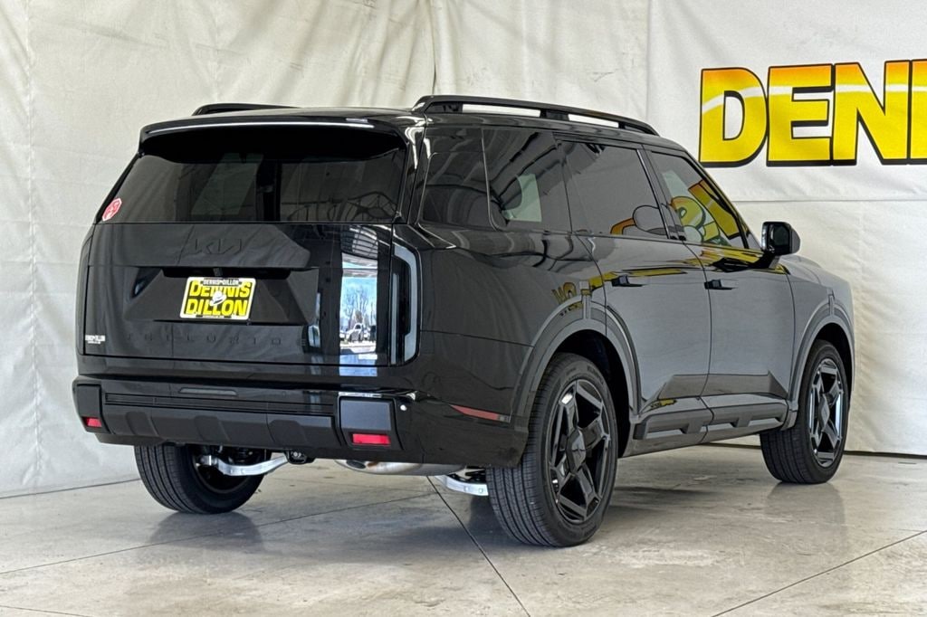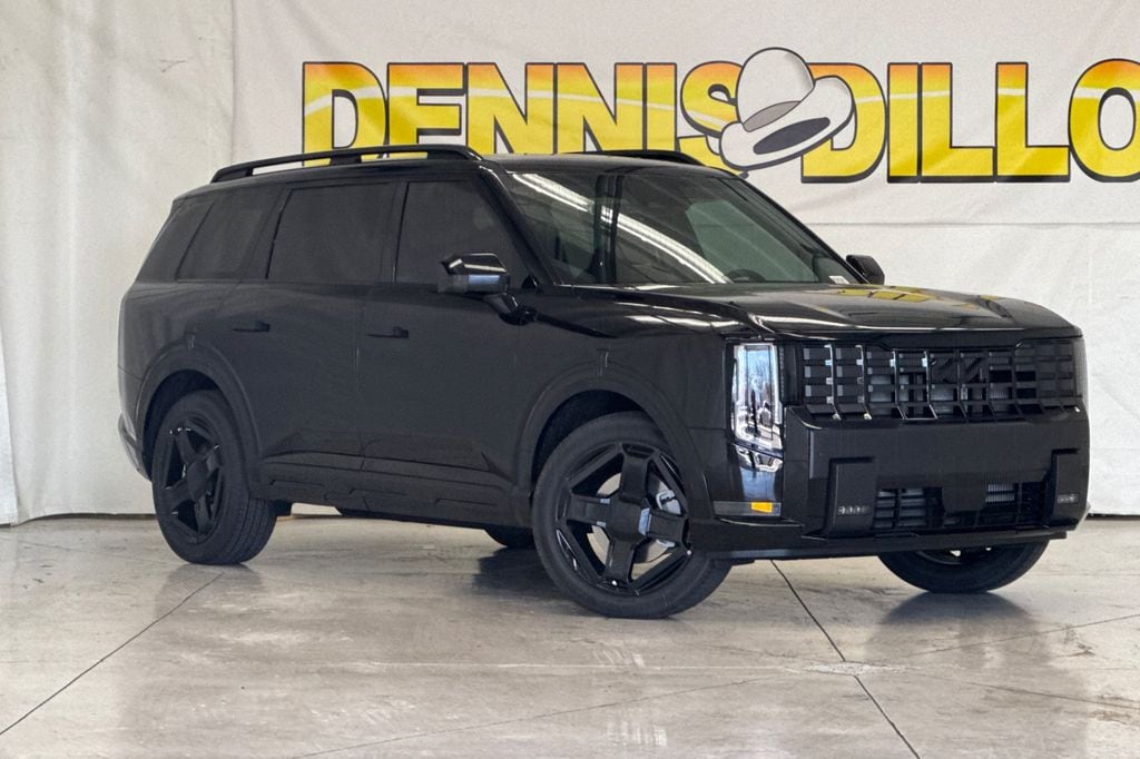 Ebony Black 2027 Kia Telluride X-Line EX AWD 8-Speed Automatic 2.5L I4 3rd row seats: split-bench, 4-Wheel Disc Brakes, 8 Speakers, ABS brakes, Air Conditioning, Alloy wheels, AM/FM radio: SiriusXM, Apple CarPlay & Android Auto, Auto High-beam Headlights, Auto-dimming Rear-View mirror, Auto-leveling suspension, Automatic temperature control, Brake assist, Bumpers: body-color, Carpeted Floor Mats, Compass, Delay-off headlights, Driver door bin, Driver vanity mirror, Dual front impact airbags, Dual front side impact airbags, Electronic Stability Control, Emergency communication system: 911 Connect, Exterior Parking Camera Rear, Four wheel independent suspension, Front anti-roll bar, Front Bucket Seats, Front Center Armrest, Front dual zone A/C, Front reading lights, Fully automatic headlights, Heated and Ventilated Front Bucket Seats, Heated door mirrors, Heated front seats, Heated steering wheel, Illuminated entry, Knee airbag, Low tire pressure warning, Navigation System, Occupant sensing airbag, Outside temperature display, Overhead airbag, Overhead console, Panic alarm, Passenger door bin, Passenger vanity mirror, Power door mirrors, Power driver seat, Power Liftgate, Power moonroof, Power passenger seat, Power steering, Power windows, Radio data system, Radio: AM/FM Display Audio System, Rear air conditioning, Rear anti-roll bar, Rear reading lights, Rear side impact airbag, Rear window defroster, Rear window wiper, Reclining 3rd row seat, Remote keyless entry, Security system, Speed control, Speed-sensing steering, Split folding rear seat, Spoiler, Steering wheel mounted audio controls, SynTex Seat Trim, Tachometer, Telescoping steering wheel, Tilt steering wheel, Towing Package, Traction control, Trip computer, Turn signal indicator mirrors, Variably intermittent wipers, Ventilated front seats, Wheels: 21" x 8" X-LINE Exclusive Type A Alloy.