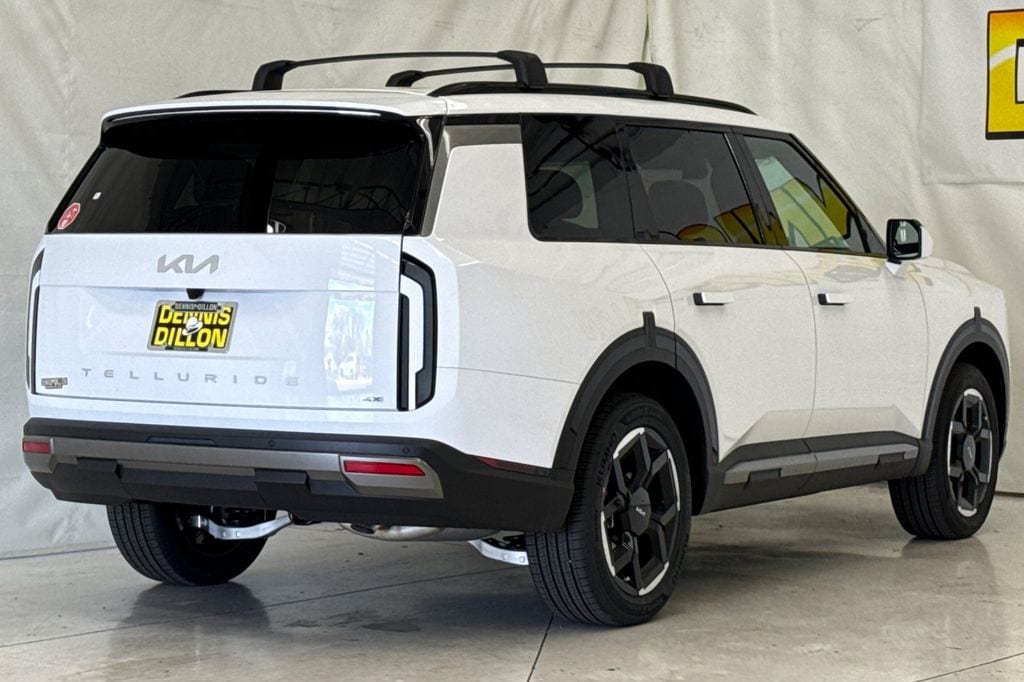 Glacial White Pearl 2027 Kia Telluride EX AWD 8-Speed Automatic 2.5L I4 DGI Turbocharged DOHC 16V LEV3-SULEV30 274hp 3rd row seats: split-bench, 4-Wheel Disc Brakes, 8 Speakers, ABS brakes, Air Conditioning, Alloy wheels, AM/FM radio: SiriusXM, Apple CarPlay & Android Auto, Auto High-beam Headlights, Auto-dimming Rear-View mirror, Automatic temperature control, Brake assist, Bumpers: body-color, Carpeted Floor Mats, Compass, Cross Bars, Delay-off headlights, Driver door bin, Driver vanity mirror, Dual front impact airbags, Dual front side impact airbags, Electronic Stability Control, Emergency communication system: 911 Connect, Exterior Parking Camera Rear, Four wheel independent suspension, Front anti-roll bar, Front Bucket Seats, Front Center Armrest, Front dual zone A/C, Front reading lights, Fully automatic headlights, Heated and Ventilated Front Bucket Seats, Heated door mirrors, Heated front seats, Illuminated entry, Knee airbag, Low tire pressure warning, Navigation System, Occupant sensing airbag, Outside temperature display, Overhead airbag, Overhead console, Panic alarm, Passenger door bin, Passenger vanity mirror, Perforated and Embossed SynTex Seat Trim, Power door mirrors, Power driver seat, Power Liftgate, Power moonroof, Power passenger seat, Power steering, Power windows, Radio data system, Radio: AM/FM Display Audio System, Rear air conditioning, Rear anti-roll bar, Rear reading lights, Rear seat center armrest, Rear side impact airbag, Rear window defroster, Rear window wiper, Reclining 3rd row seat, Remote keyless entry, Security system, Speed control, Speed-sensing steering, Split folding rear seat, Spoiler, Steering wheel mounted audio controls, Tachometer, Telescoping steering wheel, Tilt steering wheel, Traction control, Trip computer, Turn signal indicator mirrors, Variably intermittent wipers, Ventilated front seats, Wheels: 20" x 8" Type B Alloy.
