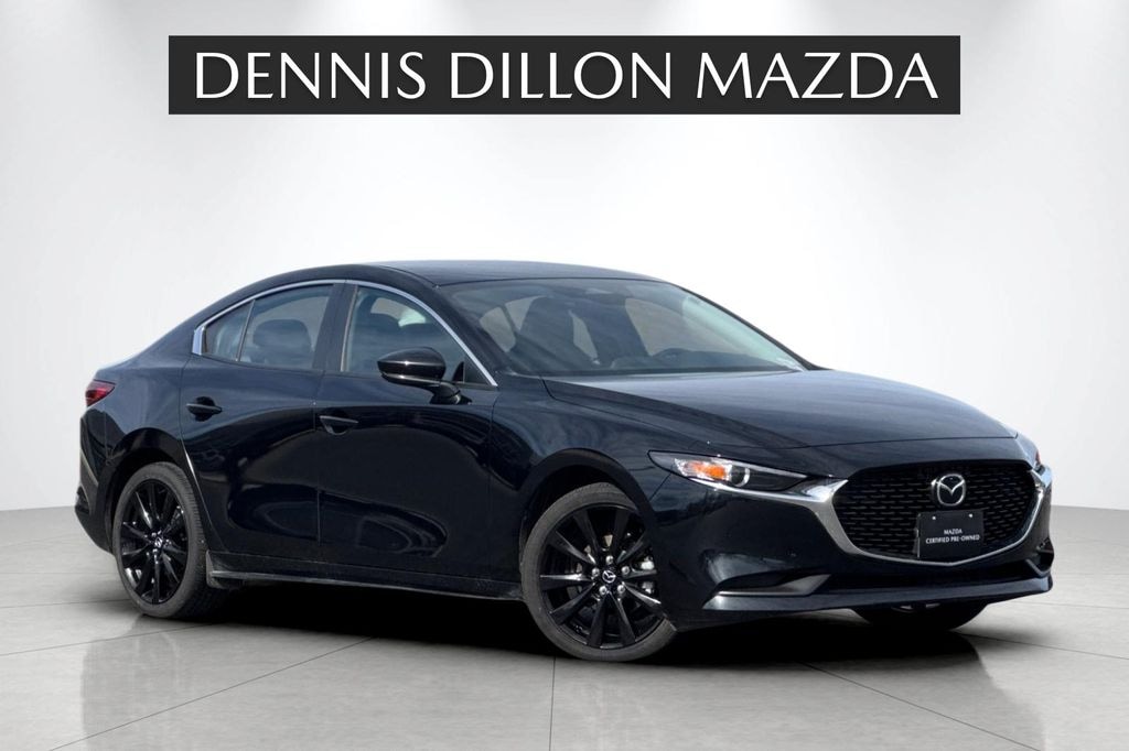 CARFAX One-Owner. Clean CARFAX. Certified. Jet Black Mica 2025 Mazda Mazda3 2.5 S Select Sport FWD 6-Speed Automatic 2.5L I4 DOHC 16V LEV3-SULEV30 191hp ///MAZDA CERTIFIED///, 4-Wheel Disc Brakes, 6 Speakers, ABS brakes, Air Conditioning, Alloy wheels, AM/FM radio, AppLink/Apple CarPlay and Android Auto, Auto High-beam Headlights, Automatic temperature control, Brake assist, Bumpers: body-color, Compass, Delay-off headlights, Driver door bin, Driver vanity mirror, Dual front impact airbags, Dual front side impact airbags, Electronic Stability Control, Emergency communication system: Mazda Connected Services (1-year complimentary trial included), Exterior Parking Camera Rear, Front anti-roll bar, Front Bucket Seats, Front Center Armrest, Front dual zone A/C, Front reading lights, Front Sport Bucket Seats, Front wheel independent suspension, Fully automatic headlights, Heated door mirrors, High Wall All-Weather Floor Mats, Illuminated entry, Knee airbag, Leather Shift Knob, Leather steering wheel, Leatherette Seat Trim, Low tire pressure warning, MAZDA CONNECT Infotainment System, Occupant sensing airbag, Outside temperature display, Overhead airbag, Overhead console, Panic alarm, Passenger door bin, Passenger vanity mirror, Power door mirrors, Power steering, Power windows, Radio data system, Radio: AM/FM Audio System, Rain sensing wipers, Rear seat center armrest, Rear side impact airbag, Rear window defroster, Remote keyless entry, Speed control, Speed-sensing steering, Split folding rear seat, Steering wheel mounted audio controls, Tachometer, Telescoping steering wheel, Tilt steering wheel, Traction control, Trip computer, Turn signal indicator mirrors, Variably intermittent wipers, Wheels: 18" x 7J Aluminum Alloy.